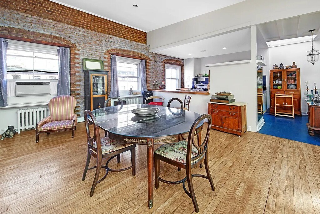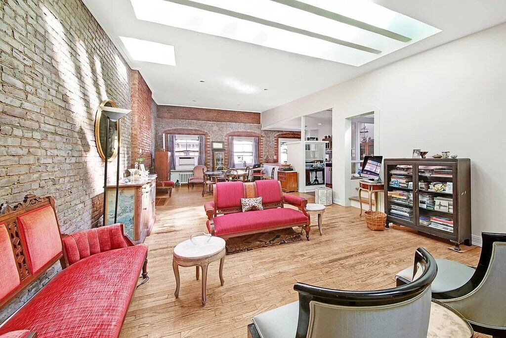 Welcome to this truly MASSIVE, sun-drenched penthouse loft in the heart of the West Village.No board approval required!A rare and character-filled 2-bedroom home with a lofted bonus space, this residence combines dramatic scale, authentic pre-war charm, and unbeatable downtown energyjust moments from the High Line, Meatpacking District, the Whitney, and Little Island.Step inside and experience soaring, uninterrupted living space highlighted by exposed brick walls, warm blonde hardwood flooring, a rustic open kitchen, and not one but two fireplaces. Multiple skylights flood the home with natural light throughout the day, creating an atmosphere that feels both expansive and inviting. This is a space designed for flexibilityperfect for lounging, entertaining, working from home, or creating a third sleeping area.The loft also features modern comforts including an in-unit washer/dryer, a new dishwasher, and generous storage throughout. Whether youre hosting dinner under the skylight glow or curling up by the fireplace, this home offers a lifestyle that feels distinctly and irresistibly downtown New York.No board approval requiredUpfront fees: $20 application feeDue at lease signing: First Month's rent + Security DepositBlending raw architectural character with thoughtful functionality, this penthouse captures the essence of classic West Village loft livingbright, airy, private, and truly one-of-a-kind.