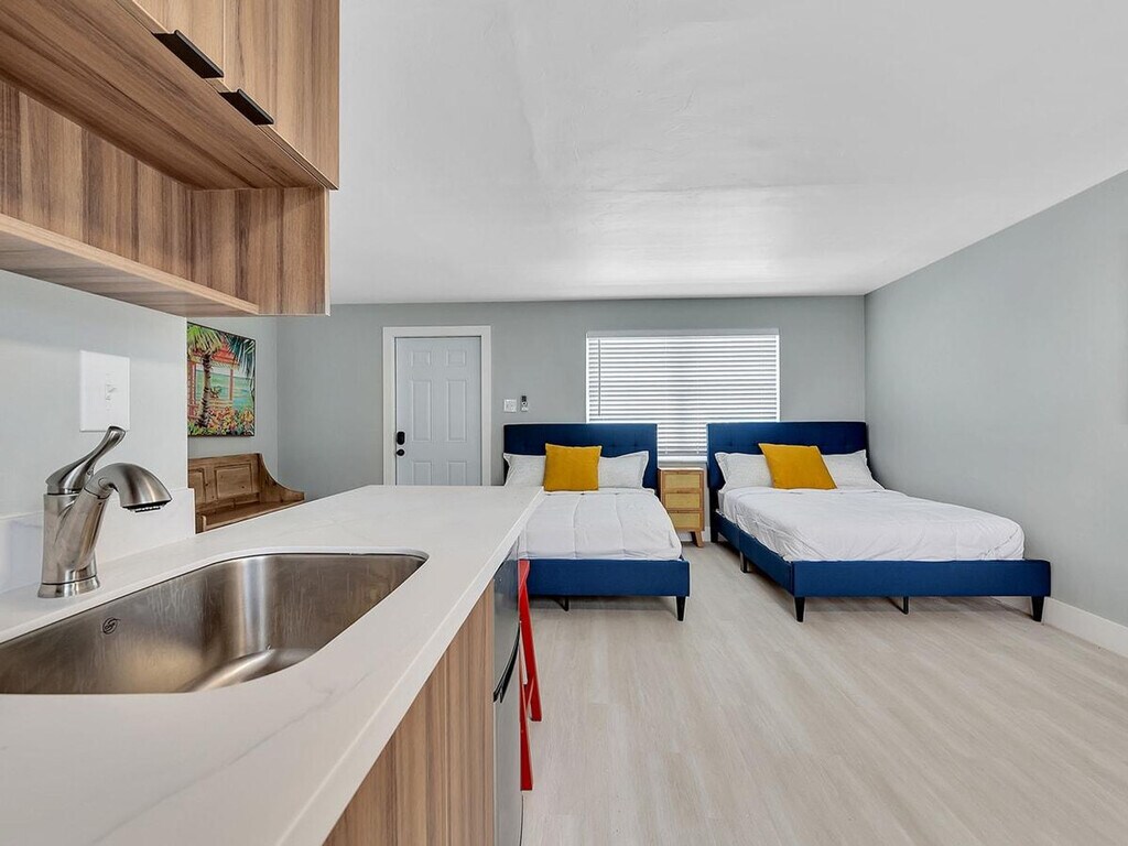 Experience the charm of a cozy 1-bedroom apartment near North Hollywood and Dania Beach, just steps from the sand. This inviting space comfortably sleeps four with a queen bed and a sofa bed, offering a full kitchen and fast WiFi for the perfect coastal escape. This apartment is thoughtfully equipped with a compact kitchenette set-up, including a cooktop for light meals, a refrigerator to keep your items fresh, a toaster for quick breakfasts, a tea pod for your daily brew, and a microwave for easy heating. Enjoy the comfort and convenience of high-speed WiFi, central air conditioning, fresh linens and towels, secure access with a keypad and electronic lock, an iron and ironing board, and a hair dryer. Beach essentials such as an umbrella, chairs, and towels are included, along with starter essentials like dish soap, shampoo, body wash, hand soap, and toilet paper. Optional early check-in or late check-out is available for $30, subject to availability. A cooler is also available upon request. Check-in is any time after 4 PM and check-out is at 10 AM. A late check-out without authorization will incur a night-rate cost penalty. Parties are fully prohibited, with quiet time from 10 PM to 6 AM. There is a $300 penalty for smoking on the property, which will also result in dismissal from your rental without a refund. A $250 penalty applies if noise levels, parties, or other obscene behavior require a police callout, also resulting in dismissal without a refund. A $100 penalty will be charged for leaving trash outside the entrance. Please avoid throwing trash or paper towels in the toilet to prevent clogging. Damage to the interior or common areas will result in a pro-rated auto-chargeback from your booking account. Upon checkout, please turn off the lights, A/C unit, water, and gas/stove, and lock the door behind you. Penalties will be automatically withdrawn from your booking account. [SI]