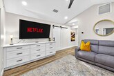 Step into The Fairway Estate, a regal Temple Terrace retreat designed for family retreats, milestone occasions, and unforgettable group getaways. This estate features bedrooms 1 to 6 with their own en-suite bathrooms, while bedrooms 7 and 8 are located in a private attached guest suite. Enjoy a private screened heated saltwater pool and spa with loungers and grill, nestled in historic Temple Terrace near Busch Gardens, USF, and downtown Tampa. No chores at checkout, just relax and enjoy! Welcome to The Fairway Estate, where every detail is designed to bring people together. This isn’t just a place to stay, it’s a home built for memory-making. At the heart of the home is a chef’s dream kitchen with an oversized island and double dishwashers, perfect for cooking together, hosting family-style dinners, or letting a private chef prepare a feast. The dining and living areas flow seamlessly, giving your group space to gather for meals, movie nights, or game time. Step outside to discover a screened private pool and spa, six loungers, outdoor seating, a propane grill, and multiple screened patios, each with their own TVs. Pool and spa heating are available at no additional charge. Pets are allowed with a fee of $100 per pet per stay or per month for extended stays. Professional shoots require permits and can be requested for an additional fee. Parking is available for up to 4 vehicles in the driveway, and parking on grass or lawns is strictly prohibited. Located directly across from Temple Terrace Golf Course, this estate sits in one of Tampa’s most charming and historic communities. Guests enjoy the peaceful, tree-lined streets of Temple Terrace with quick access to Busch Gardens and Adventure Island in 10 minutes, University of South Florida in 10 minutes, Moffitt Cancer Center in 10 minutes, downtown Tampa and Riverwalk in 20 minutes, Hard Rock Casino and Amphitheater in 15 minutes, and Tampa International Airport in 25 minutes. Quiet hours are from 8 PM to 8 AM, and no parties or events are permitted. Indoor smoking, fireworks, and glass around pool areas are prohibited, with a designated outdoor smoking area located 15 feet away from the property. Smoking violations or evidence of indoor smoke smell will result in a minimum $250 remediation fee. Guests will receive automated text notifications for noise violations. Upon booking, you will receive a link to our secure Guest Check-In Form, which must be fully completed prior to check-in. Check-in is at 4 PM and check-out is at 10 AM. Early check-in or late check-out requests should be made in advance. Outdoor security cameras and noise level detectors are installed for safety. Guests are responsible for locking all windows and doors when leaving the property. Trash sorting is required, and valet trash service is provided. Only guests listed on the reservation are allowed on the property. Disabling or tampering with security devices will result in immediate eviction without refund. Any illegal activity, including drug use, will result in immediate eviction without a refund. Pool rules include no lifeguard on duty, swim at your own risk, and children under 13 must be supervised by an adult at all times. Food, drinks, glass, and pets are not allowed in the pool. Safety precautions include not running, diving, or smoking around the pool, not using the pool during lightning storms, and not urinating in the pool. Guests are not permitted to use or add any chemicals to the pool. Guests must bring their own cleaning supplies, toiletries, and kitchen ingredients. Linens for pull-out sofas are not automatically supplied, so please let us know in advance if they are needed. Violation of any house rules may result in removal from the property without a refund. Report any damages or incidents promptly for a smooth stay. Complimentary WiFi and a dedicated workspace are available for those blending work and play. A laptop computer is not included. [SI]