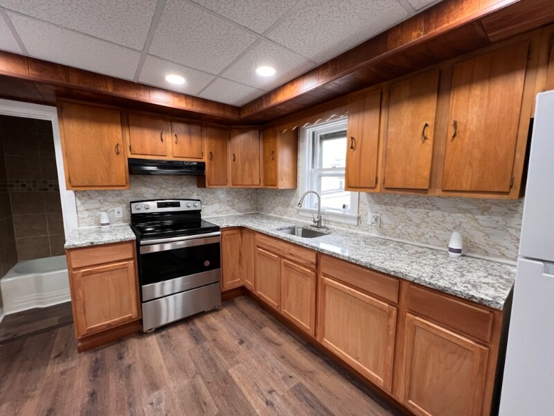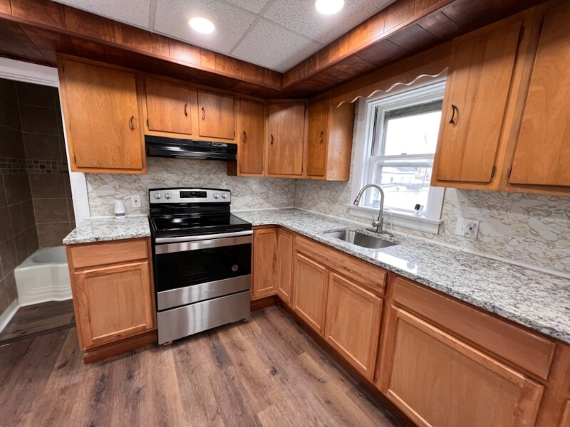 Property Id: 848082 This modern spacious 2-bedroom 1-bathroom First Floor apartment is more like a house with plenty of natural light. Private entrance and easy access to backyard. The apartment has been completely renovated with luxury flooring, neutral paint, LED lights, new Range and Refrigerator, new kitchen, new bathroom, granite counter-top, in-unit washer & dryer etc. Looking for a good tenant that can make this into a "home". Owner pays water, sewer & trash. Tenant pays electric. Please text with your details for call-back or questions. Will accept Section 8 and schedule Open Houses.