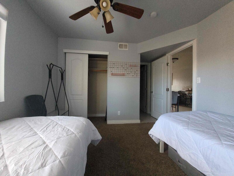 Property Id: 1664870 Prime Location: -Located in a quiet, well-maintained community -Just 6 minutes (~1 mile) to NAU and downtown Flagstaff -Upstairs end-unit with privacy, natural light, and no upstairs neighbors -Close to groceries, restaurants, hiking trails, and bus stops 2 Private Bedrooms - Perfect for Roommates or Solo Renters -Bedroom 1: Queen bed + private en-suite bathroom -Bedroom 2: Two XL twin beds + private en-suite bathroom -Desks & chairs in both rooms for work/study -Locking bedroom doors for privacy -Open to renting by the room Why You'll Love It: -Fully Furnished & Move-In Ready -Quiet upstairs end unit = more privacy -Two full bathrooms = no sharing needed -Move-in ready = no furniture or hassle -Great for roommates, students, or solo professionals ***Discounts for longer stays + flexible terms