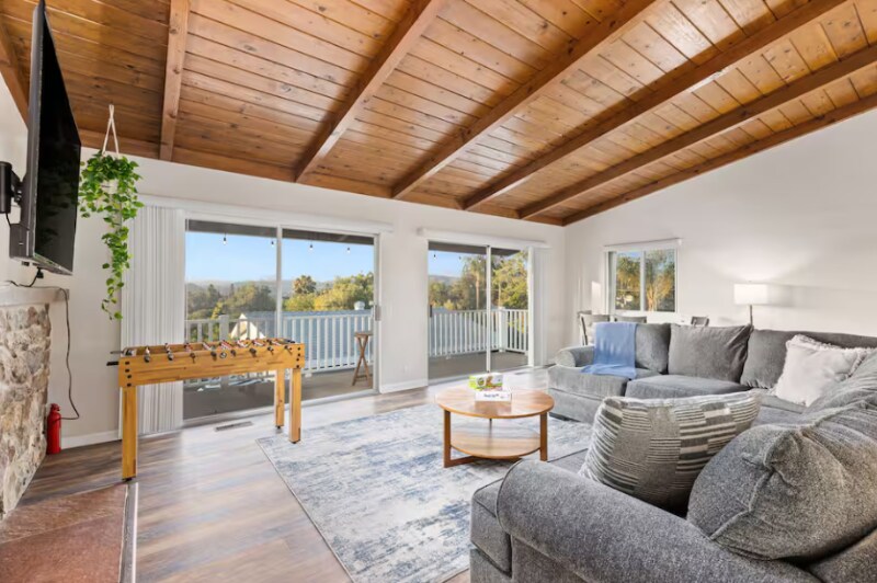 Property Id: 2249889 Welcome to the main level of our hilltop villa — a bright, spacious retreat perfect for families and groups. This upper unit features: • 2 comfortable bedrooms • 2 full bathrooms • A large, open living room ideal for gathering and relaxing • A full kitchen equipped for home-cooked meals • Dining area with plenty of seating • Private balcony access with sweeping mountain views and stunning sunsets • Laundry area located in the garage Enjoy the perfect blend of comfort and style while overlooking the peaceful Fallbrook hills. Note: Guests staying in the Lower Unit will share access to the heated pool, spa, and outdoor amenities.