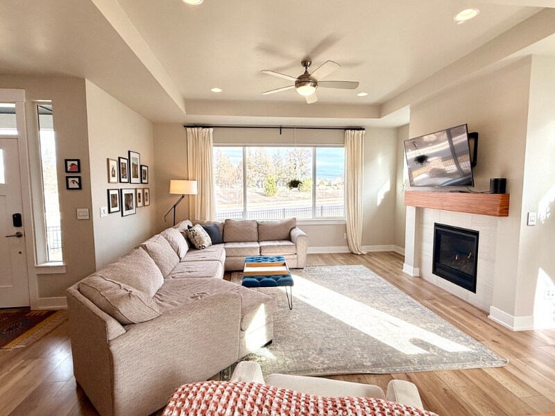 Property Id: 2377797 A beautifully designed 2,141 sq ft home featuring a bright open floor plan with a spacious kitchen, stainless steel appliances, and luxury vinyl plank flooring throughout the main level. The primary suite is on the main floor with a walk-in closet and ensuite bath, while two additional bedrooms and a versatile loft are upstairs. Enjoy a private, fenced front yard with low-maintenance landscaping and a large patio right off the kitchen. A two-car garage provides secure parking and storage. The house is directly across the street from Fieldstone park - a large space with walking paths, a playground, bike trails and more. House has solar panels - average electricity bills are ~$25/ month. Less than a two-minute walk from the Petrosa clubhouse, you’ll have access to: • Heated pool & spa • Fitness center • Community center & workspace • Fire pit & BBQ area • Parks, playgrounds & splash pad • Walking & biking trails Pet-friendly, energy-efficient, close to great schools, and Pine Nursery Park. Ideal for those seeking comfort, convenience, and connection in a vibrant neighborhood. Requirements: Income 2x rent, background and credit check, security deposit required.