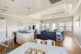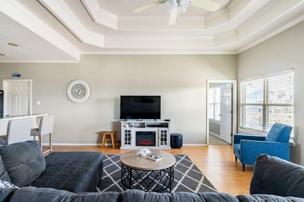 The advertised rate of $3,344/month is the lowest available price, based on a 1 month(s) stay with a move-in date of April 4, 2026. Rates vary depending on the duration of stay, season, and other parameters. For exact pricing and additional pricing components, please visit our website and enter your desired move-in and move-out dates. The rate is applicable when billed upfront; it can be higher if billed in multiple payments. Feel at home in this 3-bedroom beach house in the heart of Crystal Beach, on the Bolivar Peninsula. The house sits in a quiet pocket near the center of Crystal Beach, where you can hear the Gulf and the wind moving through the decks. Inside, the home is built for people to be together. The living room is open and bright and features an electric fireplace. The kitchen opens to the living room. Outside, there is space to sit, eat, and watch the light change on the partially covered deck. Below, you’ll find outdoor seating, a dining area, and a grill. Down in the garage hangout, there is a propane fire pit and chairs. The streets are simple and low, with houses on pilings and the Gulf out in front of it all. In the morning, you can be on the sand in a short walk or a quick golf cart ride, driving along the wide, open beach the peninsula is known for. Around you is an easy-going beach town where families set up canopies on the shore and stay all day. Golf carts roll along the back roads and on most stretches of beach where they’re allowed, and there are simple places to eat, pick up bait, or grab ice and groceries just a short drive away. The house sleeps 8 people. Any extra guests must be cleared before booking, and only registered guests may stay. Visitors need approval first. Do not park under the house; use the driveway only and take care not to hit the pilings. Keep noise down at night so neighbors can rest. Do not move the furniture, inside or out, including chairs, picnic tables, and anything set in place. Grill only downstairs on the patio, never on the deck, and please clean the grill after you use it. Rinse sand off with the shower downstairs and leave sandy shoes at the door or on the deck by the entrance. Do not flush feminine products or anything that could harm the septic system. Do not pour grease down any drain. Lock all doors when you leave the house. [SI]