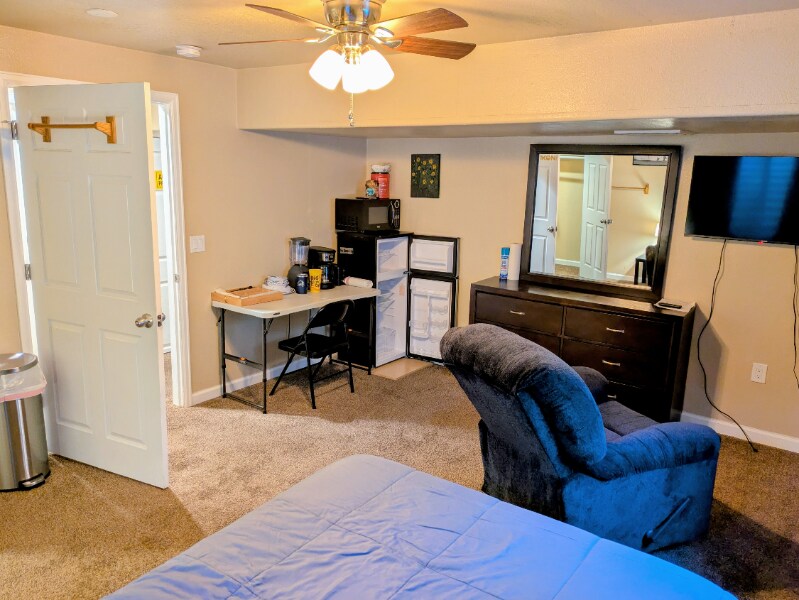 Property Id: 2308618 PRIVATE - One Furnished Basement Bedroom for individual. FREE Street parking. ALL utilities included: gas, electric, water, sewer, trash, Wi-Fi. Also includes a ROKU TV, fridge, microwave, toaster, table, and recliner. Full Shared bathroom with washer/dryer. Close to Denver International Airport with easy routes to downtown. Access is through the house. Security deposit required. A Photo ID is required. No hot plate cooking. No Smoking. Please inquire for immediate showing!