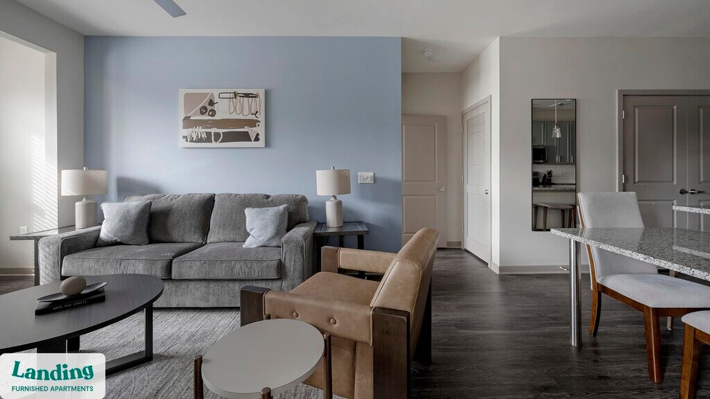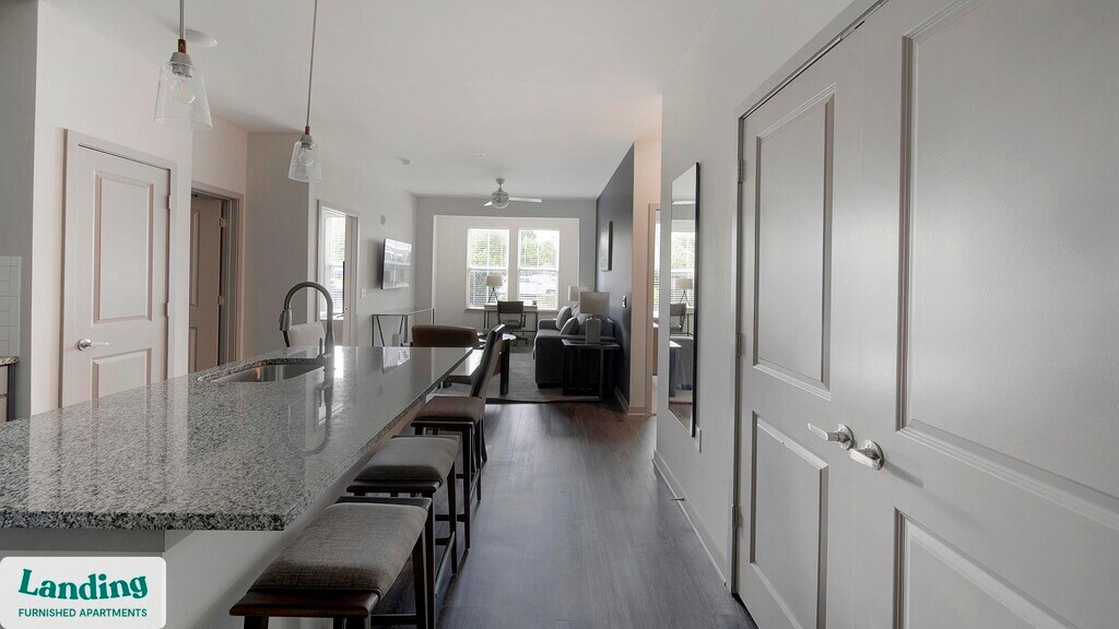 Landing offers flexible lease terms from weeks to months. Please always visit our website or contact us for the latest pricing & availability. Stay longer, save more: 6-Month Minimum base rent: starts at $2340/mo 12-Month Minimum base rent: starts at $2085/mo Landing offers flexible leases across a network of over 35,000 fully-furnished apartments throughout 375+ cities so you can rent on your terms, practically anywhere, and avoid the hassle of paying deposits or application fees. Visit to learn about all the benefits of a Landing membership, see our competitive up-to-date pricing, explore available apartments, take virtual tours, and make reservations online without jumping through traditional rental hoops. Landing's apartments at Parc at Murfreesboro are designed for comfortable, easy living, with the ability to stay as long as you like. Experience living with Landing Every apartment is outfitted with all the modern essentials including: custom-designed furnishings, a fully-equipped kitchen with deluxe stainless steel appliances, a gourmet coffee maker, premium linens, Smart TVs, and incredibly fast, reliable internet for working from home. When you live with Landing, you'll enjoy a hassle-free experience with the added benefit of 24/7 access to our dedicated member experience team. Some of the nitty-gritty: a background check and proof of income are required; we're completely smoke-free; bundled utility packages and pricing vary based on length of stay; pet-friendly options available; listed price reflects a 12-month minimum stay.