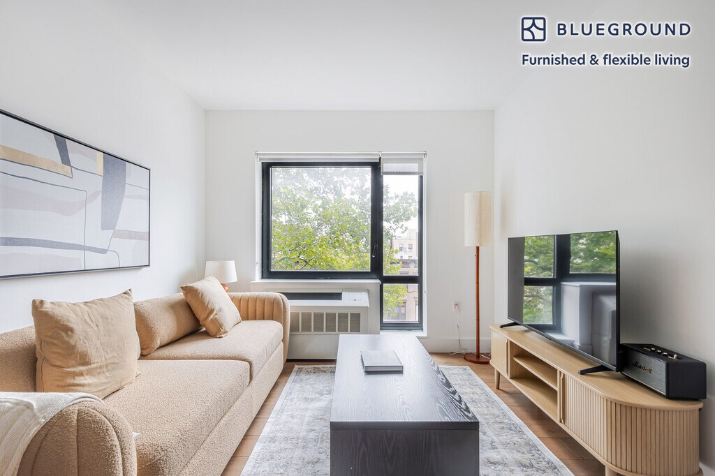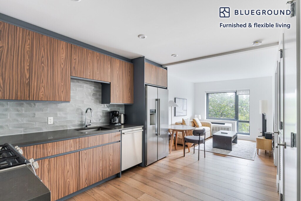 Discover the best of New York, with this one bedroom apartment in Clinton Hill. It’ll be easy to simply show up and start living in this furnished apartment with its fully equipped kitchen, living room, and our dedicated, on-the-ground support. (ID #NYC1979) The advertised rate of $4,160/month is the lowest available price, based on a 11 month(s) and 29 day(s) stay with a move-in date of January 22, 2026. Rates vary depending on the duration of stay, season, and other parameters. For exact pricing and additional pricing components, please visit our website and enter your desired move-in and move-out dates. The rate is applicable when billed upfront; it can be higher if billed in multiple payments. Brokers are welcome to reach out. Were you looking for an unfurnished lease? Try Blueground instead and upgrade from unfurnished to furnished living: - Furnished at rates comparable to unfurnished - No setup or furniture costs - save thousands - Move-in ready - save time, just bring your suitcase Designed with you in mind Thoughtfully designed with bespoke finishes, modern furnishings, and a fully equipped kitchen, you’ll enjoy that “I’m home” feeling with this Blueground apartment. Whether you’re lounging in your stylish living room streaming the latest and greatest entertainment on the smart TV or premium wireless speaker, or getting some well-earned rest on the superior quality mattress with luxury linens, you’ll fall in love with everything this Clinton Hill apartment has to offer. This apartment also offers in-apartment laundry. Sleeping arrangements Queen Bed, 63in/160cm Amenities Building amenities unique to this one bedroom apartment include an on-site: - Doorman - Dryer - Elevator - Washing machine - Lounge - Rooftop BBQ Arrival and ongoing support The entire apartment is yours to enjoy! Throughout your stay, you’ll have access to our Client Experience team through the Blueground App. You can schedule additional cleanings, submit maintenance requests, and view our neighborhood recommendations with just a few taps. We’ll share all details upon confirmation of your stay. Ideally Located This furnished apartment is located in Clinton Hill, a historic downtown Brooklyn neighborhood. The area is home to trendy shops, inventive restaurants, and plenty of beautiful brownstone buildings. The Pratt Institute, a prestigious art college, is located in Clinton Hill. Other nearby attractions include lovely Fort Greene Park and Barclays Center, a massive sports arena and concert venue. Clinton Hill is served by the A, C, and G lines of the New York City subway system. Other things to note Building amenities may have an extra cost. This Blueground apartment has flexible lease options, allowing you to book it for one month, a year, or more. Brokes CYOF. We take great pride in ensuring every photo displayed is shot in our own units with our actual furnishings. That said, we regularly refresh our decor and furniture arrangement, which may differ from what’s pictured. [SI]