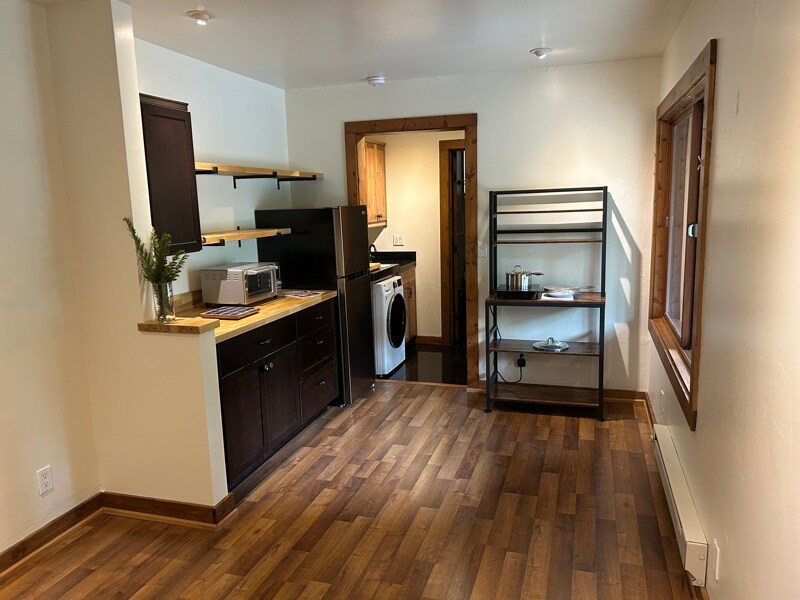 Property Id: 2166060 Remodeled 1Bd 1Ba ADU a brief walk to downtown and parks. A beautiful, large, secure, enclosed patio with fountain and off street parking with a shared storage shed. All utilities including high speed internet WiFi and courtesy cable TV as a bonus. Monthly garden patio maintenance included. Small, well behaved dog(s) accepted with a deposit. Kitchenette includes plenty of counter and storage cabinets, a sink with disposal, an LG small washer/dryer combo unit, a Duxtop magnetic cooktop and pans, a Nuwave Bravo Pro Convection Air Fryer Toaster Oven Combo, and a small microwave will be furnished if needed. The full bath has a beautiful vanity, an enclosed tub/shower and storage shelves. A