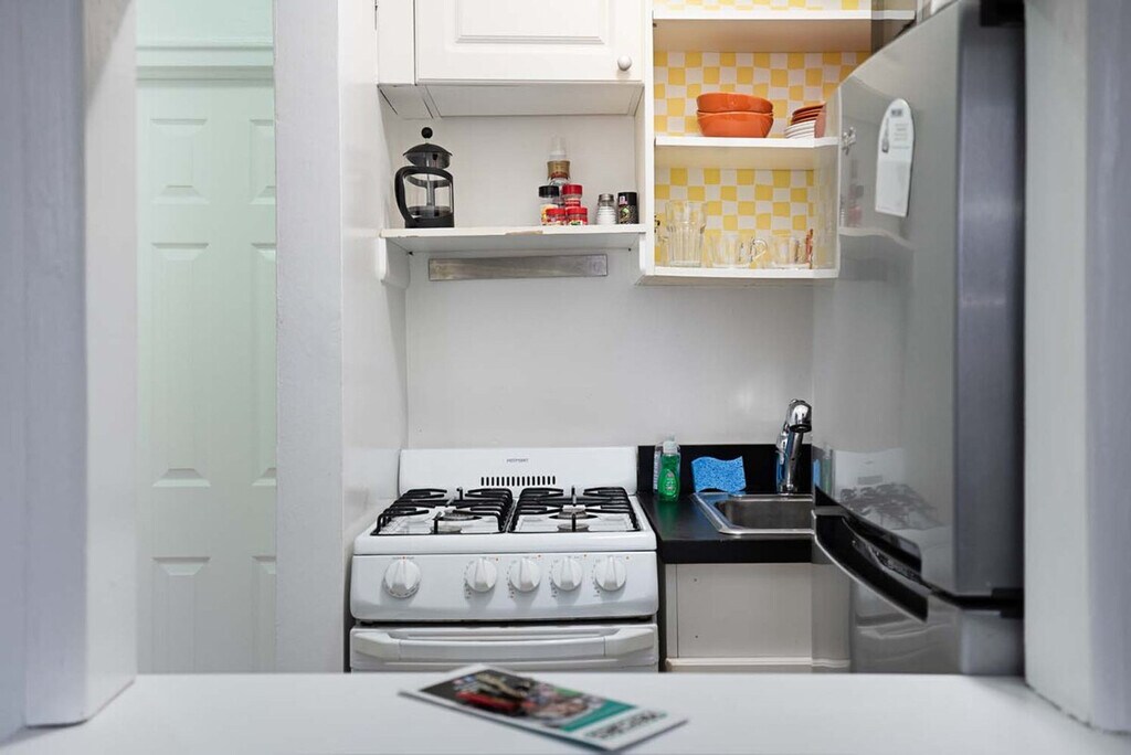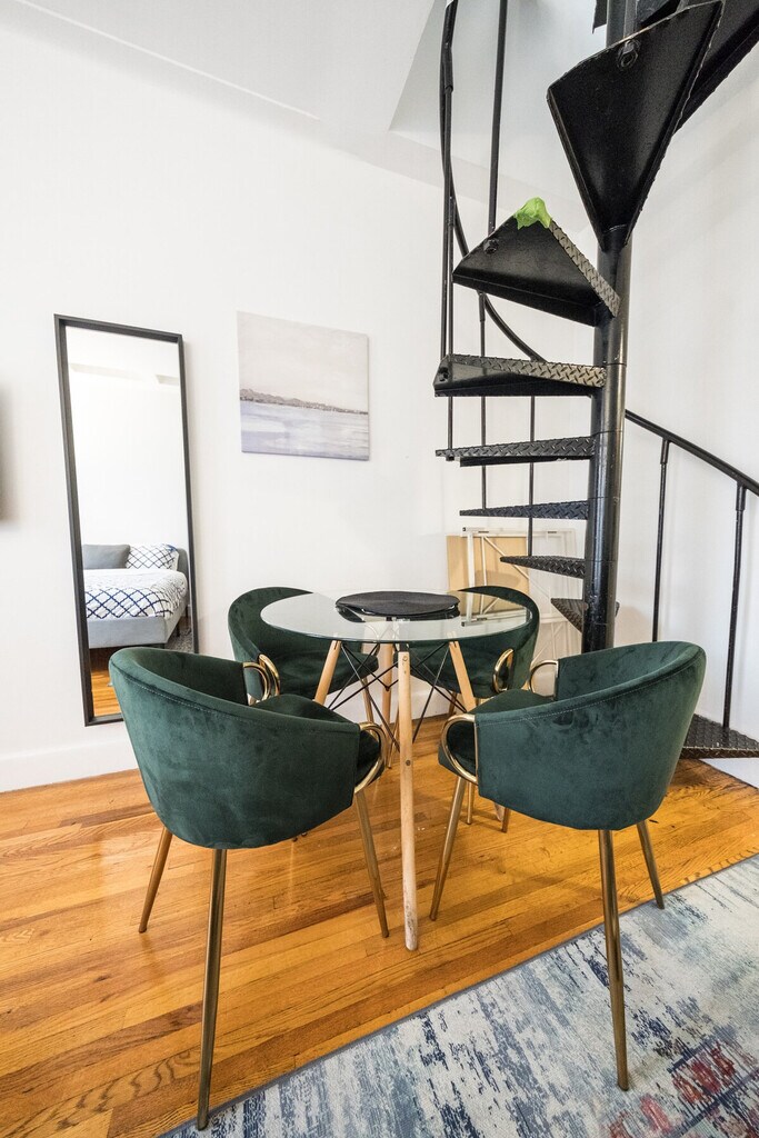 Welcome to your home away from home! This cozy and stylish private studio apartment offers everything you need for a comfortable and convenient extended stay. Located on the fourth-floor walk-up, this apartment is in an unbeatable spot near the 6 and Q subway lines and just a short stroll to the iconic Central Park, providing easy access to all that the city has to offer. The apartment features a separate sleeping loft for extra privacy and a great layout that maximizes space. It is fully furnished for your comfort, including a queen-size bed in the sleeping loft and a full-size bed in the main area downstairs, along with a desk and chair for work or relaxation. The fully equipped kitchen comes with a large refrigerator, stovetop, oven, coffee maker, toaster, microwave, and all the utensils and cutlery you'll need to cook your favorite meals. The beautiful marble bathroom includes both a shower and a bathtub, perfect for unwinding after a day of exploring. Essential amenities include fresh linens, towels, an iron, and a hairdryer for your convenience. Air conditioning and Wi-Fi keep you cool and connected, and laundry is made easy with an on-site washer/dryer in the basement. Street parking is available and free. Be sure to read all the posted signs to avoid any tickets as there is alternate side parking on most days, with different days for different streets around the neighborhood. Experience the best of New York City living with comfort, style, and unbeatable access to Central Park and transportation. The apartment is just 2 minutes from the Q train line at 72nd Street subway station and 8 minutes from the 6 train line at 77th Street subway station. A City Bike station is 200 meters away, and there are plenty of restaurants right on the corner. The Upper East Side is known for its posh buildings, Madison Avenue's flagship boutiques, and proximity to some of the most fantastic museums in the country. Access to the loft is via a ladder, so ensure you're comfortable with this set-up. Absolutely no smoking is allowed inside or outside of the apartment, and violations will result in a $500 fine. Pets are not allowed, and there is no luggage storage available on-site. Please use the service to store your luggage before check-in or after check-out. The apartment must be used for vacation purposes only, with no commercial use. Quiet hours are from 10 pm to 7 am, and you cannot receive mail at this address, so consider opening a PO Box. Check-out time is at 11:00 AM, and all guests must respect the house rules to avoid any penalties. Kindly note that a $350 refundable security deposit is required and will be collected directly by the partner after your booking is confirmed. The security deposit will be handled through direct communication with the partner and is not processed automatically.
