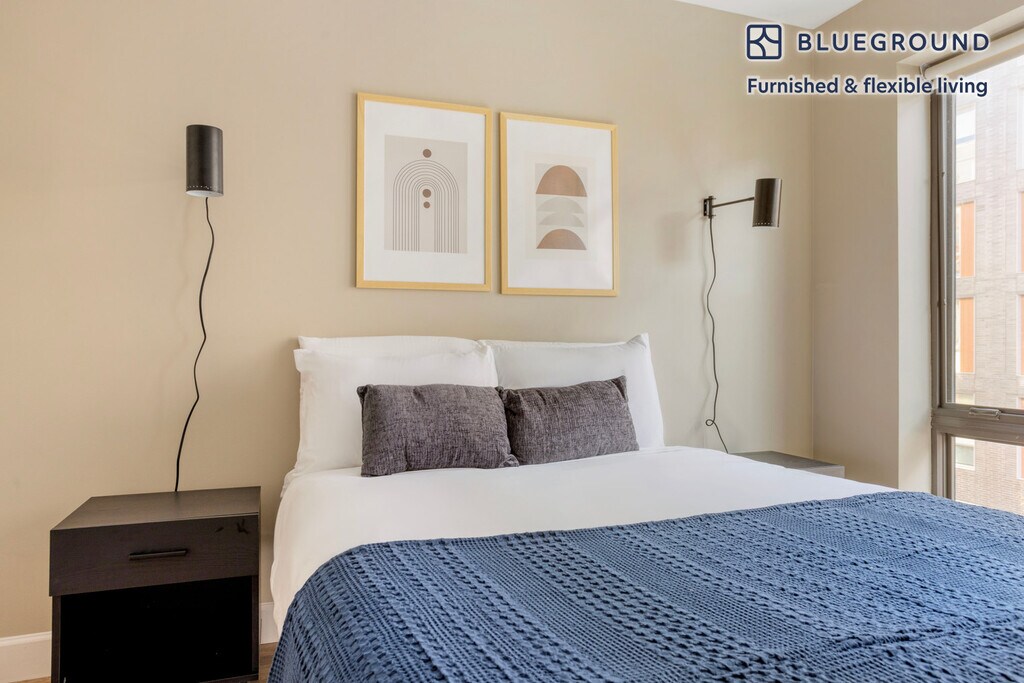 Show up and start living from day one in Cambridge with this spacious two bedroom Blueground apartment. You’ll love coming home to this thoughtfully furnished, beautifully designed, and fully equipped Kendall Square home with stunning views over the city. (ID #BOS946) The advertised rate of $4,590/month is the lowest available price, based on a 6 month(s) and 7 day(s) stay with a move-in date of September 8, 2026. If you’re looking for a 1-year stay, the rate is $4,760/month. Rates vary depending on the duration of stay, season, and other parameters. For exact pricing and additional pricing components, please visit our website and enter your desired move-in and move-out dates. The rate is applicable when billed upfront; it can be higher if billed in multiple payments. Brokers are welcome to reach out. Were you looking for an unfurnished lease? Try Blueground instead and upgrade from unfurnished to furnished living: - Furnished at rates comparable to unfurnished - No setup or furniture costs - save thousands - Move-in ready - save time, just bring your suitcase Designed with you in mind Thoughtfully designed with bespoke finishes, modern furnishings, and a fully equipped kitchen, you’ll enjoy that “I’m home” feeling with this Blueground apartment. Whether you’re lounging in your stylish living room streaming the latest and greatest entertainment on the smart TV or premium wireless speaker, or getting some well-earned rest on the superior quality mattress with luxury linens, you’ll fall in love with everything this Kendall Square apartment has to offer. This apartment also offers in-apartment laundry. Sleeping arrangements King Bed, 70.8in/180cm Queen Bed, 63in/160cm Amenities Building amenities unique to this two bedroom apartment include an on-site: - BBQ Area - Dryer - Elevator - Washing machine - Lounge - Parking - Pets allowed Arrival and ongoing support The entire apartment is yours to enjoy! Throughout your stay, you’ll have access to our Client Experience team through the Blueground App. You can schedule additional cleanings, submit maintenance requests, and view our neighborhood recommendations with just a few taps. We’ll share all details upon confirmation of your stay. Ideally Located This furnished apartment is situated on Kendall Square at the intersection of Main Street and Broadway. The area hosts MIT and a variety of co-working spaces and incubators, ideal for bright young minds. It is home to a cutting-edge tech community and has thus become one of the world's most important tech and biotech centers. Farm-to-table restaurants and third-wave coffee joints have also found their places around this startup culture. The Cambridge neighborhood, which is a top destination for shopping, is centered around Kendall Square. The Kendall transit stop is only a 4-minute walk away via Main Street. Other things to note Building amenities may have an extra cost. This Blueground apartment has flexible lease options, allowing you to book it for one month, a year, or more. Pets are welcome, though weight limits and breed restrictions apply and may incur fees. Parking is offered based on availability and is subject to a fee. We take great pride in ensuring every photo displayed is shot in our own units with our actual furnishings. That said, we regularly refresh our decor and furniture arrangement, which may differ from what’s pictured. [SI]