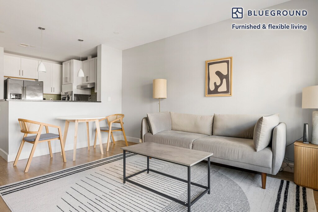 Feel at home wherever you choose to live with Blueground. You’ll love this cozy Kendall Square furnished one bedroom apartment with its modern decor, fully equipped kitchen, and lovely living room. Ideally located, you’re close to all the best that Cambridge has to offer! (ID #BOS1156) The advertised rate of $2,550/month is the lowest available price, based on a 1 month(s) and 4 day(s) stay with a move-in date of November 24, 2025. If you’re looking for a 1-year stay, the rate is $3,570/month. Rates vary depending on the duration of stay, season, and other parameters. For exact pricing and additional pricing components, please visit our website and enter your desired move-in and move-out dates. The rate is applicable when billed upfront; it can be higher if billed in multiple payments. Brokers are welcome to reach out. Were you looking for an unfurnished lease? Try Blueground instead and upgrade from unfurnished to furnished living: - Furnished at rates comparable to unfurnished - No setup or furniture costs - save thousands - Move-in ready - save time, just bring your suitcase Designed with you in mind Gorgeous furniture, fully equipped kitchen, smart TV, and a premium wireless speaker are just a few of the amenities you’ll find inside this one bedroom apartment. Ideally located in Cambridge, you’ll find a lot to love outside as well. When you’re ready to relax, you’ll be happy to discover every Blueground bedroom comes with superior quality mattresses, luxury linens, and cozy towels. We handle everything so you can simply show up and start living. This apartment also offers in-apartment laundry. Sleeping arrangements Queen Bed, 63in/160cm Amenities Building amenities unique to this one bedroom apartment include an on-site: - BBQ Area - Dryer - Elevator - Washing machine - Lounge - Parking - Pets allowed Arrival and ongoing support The entire apartment is yours to enjoy! Throughout your stay, you’ll have access to our Client Experience team through the Blueground App. You can schedule additional cleanings, submit maintenance requests, and view our neighborhood recommendations with just a few taps. We’ll share all details upon confirmation of your stay. Ideally Located This furnished apartment is situated on Kendall Square at the intersection of Main Street and Broadway. The area hosts MIT and a variety of co-working spaces and incubators, ideal for bright young minds. It is home to a cutting-edge tech community and has thus become one of the world's most important tech and biotech centers. Farm-to-table restaurants and third-wave coffee joints have also found their places around this startup culture. The Cambridge neighborhood, which is a top destination for shopping, is centered around Kendall Square. The Kendall transit stop is only a 4-minute walk away via Main Street. Other things to note Building amenities may have an extra cost. This Blueground apartment has flexible lease options, allowing you to book it for one month, a year, or more. Pets are welcome, though weight limits and breed restrictions apply and may incur fees. Parking is offered based on availability and is subject to a fee. We take great pride in ensuring every photo displayed is shot in our own units with our actual furnishings. That said, we regularly refresh our decor and furniture arrangement, which may differ from what’s pictured. [SI]