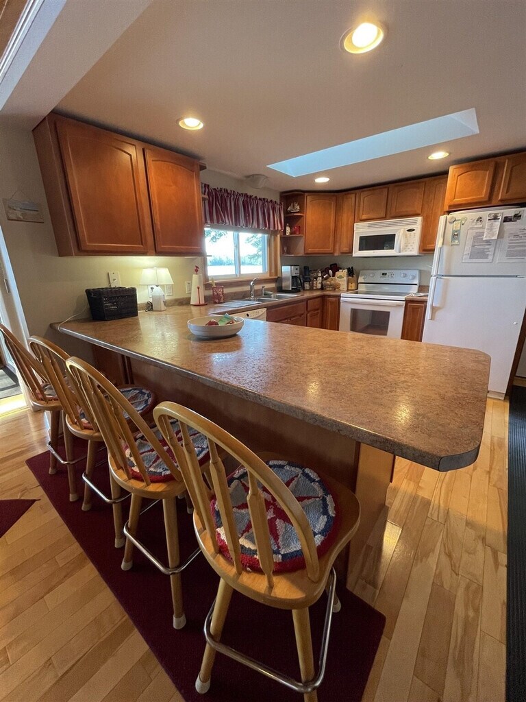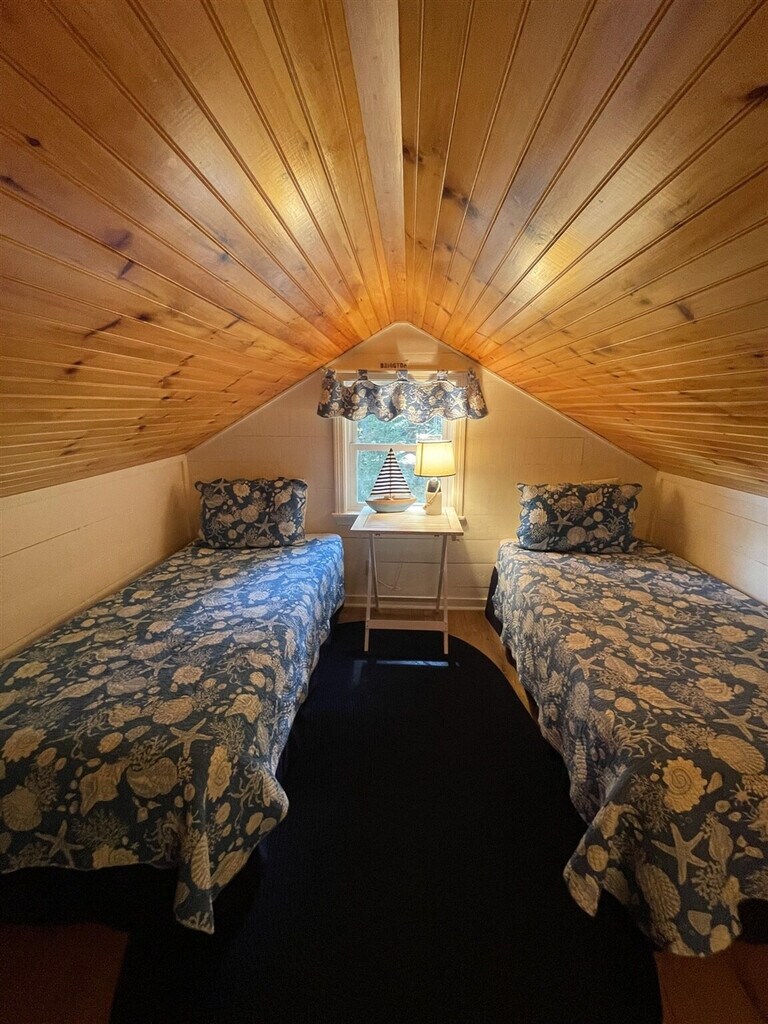 Experience the charm of lakefront living with this contemporary four-bedroom home on Woods Pond. With a spacious open concept living, kitchen, and dining area, this property offers great open lake views from the living areas and the master bedroom. The home features two and a half bathrooms, a dishwasher, and a washer/dryer, ensuring all the conveniences of home are at your fingertips. The property strictly enforces a no-pets policy due to serious owner allergies. The walkout lower level boasts a comfortable den with an adjacent half bath, perfect for relaxation. Step outside to a nice deck on the water side, complete with an outdoor shower. With cable TV and internet access, this home truly becomes your home away from home. The lot is gently sloping with a level grassy yard on the lake side, featuring sandy bottom frontage and a firepit near the shore for evening campfires. A dock is available, suitable for tie-up. Linens and towels are not provided but are available to rent at our office. The property strictly enforces a no-pets policy due to serious owner allergies. Smoking is not allowed. Linens and towels are not provided but are available to rent at our office. [SI]