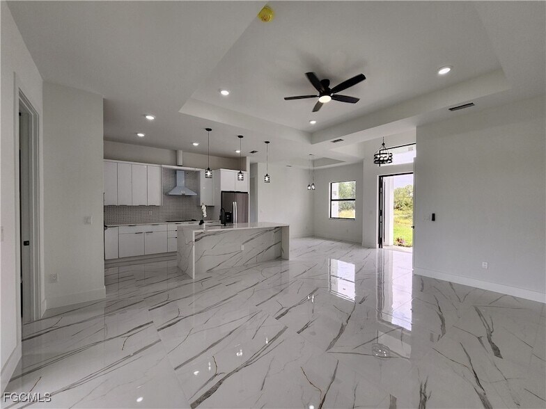 READY NEW CONSTRUCTION HOME 2025! 4 Bed / 2 baths - Discover this stunning brand-new construction home in the fast-growing community of Lehigh Acres! On an open floor plan with countless upgrades with 2371 Total Sqft. This single-family home offers luxury features throughout along with quality high-end construction-Double Door Entry, Open Concept Floor, Impact Windows and Doors, Cathedral Ceilings, Smoke Detectors, LED lighting, porcelain tile floors Throughout, Utility Sink. Kitchen Island with room for seating, Wood Cabinets with soft close doors and Quartz Countertops. Stainless Steel Kitchen Appliances. Spacious Master Suite with Cathedral Ceiling, Walk-In-Closets, Dual Sinks, Glass Door. Two Car Garage, Driveway in Pavers, sprinkles Large and Relaxing Lanai. Wonderful and quiet neighborhood, NO HOA fees! This Property is ready to live and enjoy now!