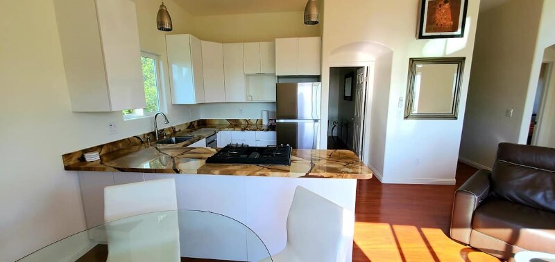 Identificación de la propiedad: 987642 Hermoso, completamente amueblado 2hab 1ba huésped casa con vista a la bahía y al mar, construido en 2020 con todas las nuevas comodidades de diseño exclusivo, acabados renovados, electrodomésticos nuevos, y 10ft de altura. Perfectamente ubicado a 2 calles de Mission Bay, a dos cuadras del tranvía, a 5 minutos de Pacific Beach, a 10 minutos de la Jolla, a 15 minutos del centro y a 15 minutos del parque Balboa Park. El alquiler incluye los servicios públicos, gas, electricidad, Internet, agua y recolección de residuos.