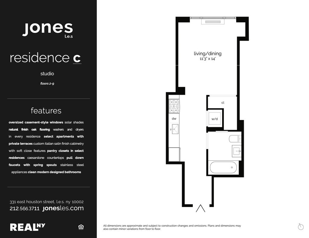 Absolutely stunning studio in a luxury doorman building in prime Lower East Side!Featuring condo-quality finishes, a smart open layout, and lots of light.Apartment Features:Floor-to-ceiling windowsNatural hardwood strip flooringSoaring ceilings and open layoutFull-size washer & dryer in-unitStainless steel appliances: dishwasher & microwave includedCustom Italian satin-finish cabinetry with soft-close featuresSpacious bathroom with deep soaking tub & built-in grooming stationAmple closet space throughoutBuilding Amenities The Jones L.E.S.24-hour doormanState-of-the-art fitness centerBike storageBilliards tableWi-Fi tenant loungeLandscaped gardenStunning rooftop with:Outdoor screening areaCommercial-sized grillSurround soundModern lounge seatingRain showerLease Terms & FeesFirst months rent + security deposit due at lease signing$400 annual amenity fee (per person)$20 application fee (per person)Additional third-party guarantor fees may apply if applicable