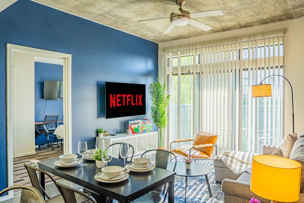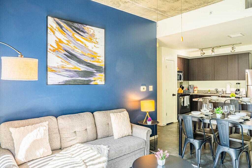 Experience the charm of Phoenix living in this comfortable and modern apartment. Nestled in a quiet neighborhood, this strategically placed home offers easy access to local attractions, including pubs, bars, dining spots, and businesses, ensuring you feel at home. After exploring the vibrant city, return to a stress-free and relaxing environment. This 2-bedroom unit is designed to provide a socially and environmentally conscious living environment, paired with top-notch customer service and unparalleled amenities. The innovative open-concept design seamlessly blends the living and dining areas with the kitchen, offering a modern and sleek living experience. The living room is perfect for relaxing with friends and family, featuring a stylish interior, a sofa bed, and a 4K 55" HDR Smart TV. The fully equipped kitchen includes a microwave, stove, oven, refrigerator/freezer, dishwasher, toaster, coffee maker, and dining table with chairs. The apartment comes with one parking spot, and guests need to print their parking pass as detailed in the check-in instructions. Pets are allowed depending on size or if they are service animals, with an additional cleaning fee required per pet. There is a 2-pet maximum, and only cats and dogs are allowed. If pets are brought without prior notification, a $500 fee will be imposed. Welcome to the vibrant district of Phoenix, AZ, a dynamic urban enclave that combines modern living with cultural richness. Nestled in the heart of downtown Phoenix, this apartment offers a unique blend of convenience and cultural exploration. Immerse yourself in the arts and culture scene at the nearby Roosevelt Row Arts District, indulge in diverse culinary experiences, and enjoy the lively nightlife. Sports fans and concert-goers will appreciate the proximity to major entertainment venues like Chase Field and Talking Stick Resort Arena. Enjoy the outdoors at nearby Hance Park and navigate the city with ease using the light rail system, bike-friendly paths, and rideshare services. Guest verification is required, including providing a government-issued ID and a valid credit card. Quiet hours are between 10pm and 8am daily, and violations may result in cancellation of booking and removal from the property without refund. A strict no-party policy is enforced, with a $100 fine per unauthorized guest and a $500 fine for smoking on the premises. Additional fees may apply for lost keys, late check-out, and extra cleaning if needed. Regular pest control is conducted, but occasional small bugs may be present due to seasonal changes. [SI]