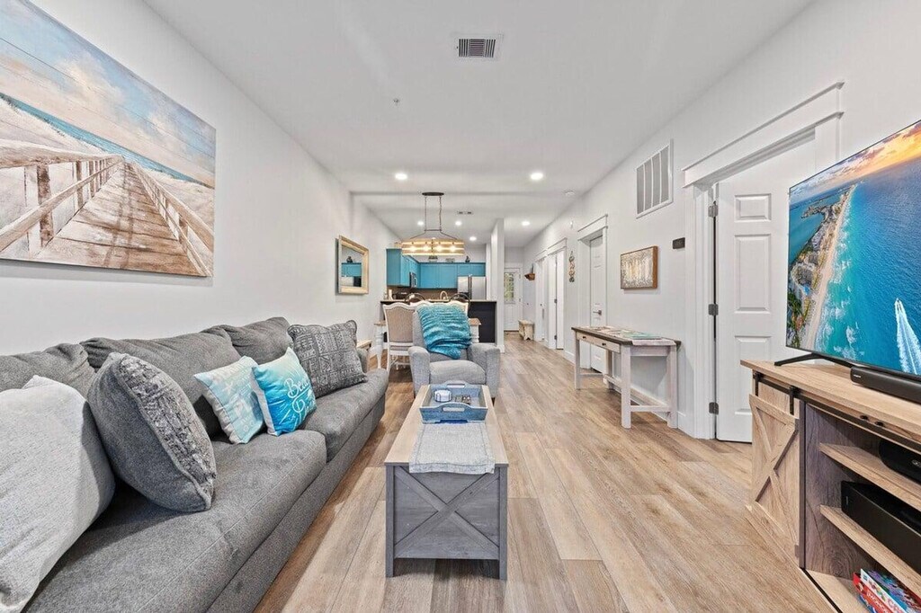 The advertised rate of $3,765/month is the lowest available price, based on a 1 month(s) and 2 day(s) stay with a move-in date of February 21, 2026. Rates vary depending on the duration of stay, season, and other parameters. For exact pricing and additional pricing components, please visit our website and enter your desired move-in and move-out dates. The rate is applicable when billed upfront; it can be higher if billed in multiple payments. Feel at home in this coastal-inspired 2-bedroom, 2-bathroom condo at Heron's Watch in Seagrove Beach. This condo offers all you need for a memorable beach getaway. Unwind in this peaceful condo, featuring a king-size bed in the master bedroom with a private ensuite bathroom, a queen bed in the second bedroom, and a queen pull-out couch in the living room, comfortably accommodating up to six guests. The open layout and coastal blue accents provide a cozy, refreshing feel, while the views of the nearby pool add a touch of charm. With easy access to the patio, grill area, and pool, this condo combines convenience with relaxation. The kitchen is fully stocked with full-size appliances, and there is a washer and dryer in unit. Two dedicated parking passes are available for easy access. High-speed Wi-Fi is available for streaming and remote work convenience. Located in the heart of Seagrove Beach, this condo is close to everything that makes 30A special. Enjoy walking access to Eastern Lake and the Gulf, and a short drive to iconic Seaside, Watercolor, and Rosemary Beach. Nearby bike rentals are available for easy cruising along 30A. Explore the unique coastal dune lake ecosystem with opportunities for paddleboarding and kayaking. A vibrant local dining scene, including Old Florida Fish House and the quaint Beachy Bean Coffee, are just minutes away. Local parks like Deer Lake State Park and Grayton Beach State Park are nearby for hiking and nature. Dining options such as The Hub/The Big Chill, Cuvee 30A, and The Pearl are at nearby 30A hotspots. Local shops and rental services are available to enhance your beach experience. Pets are not allowed. [SI]