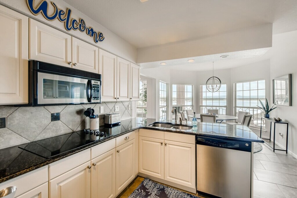 This newly remodeled 4-bedroom luxury condo combines tranquility and style with a touch of modernism, offering a dream place to feel at home. With a huge balcony overseeing the lake and a wide view of the plains, this condo is located in the heart of Lago Vista and comes with a magnitude of amenities. The condo features an on-site restaurant, gym, two outdoor pools, one indoor pool, a sauna, a tennis court, and a spa. It comfortably sleeps eight, or ten with small children, and includes two covered parking spots. A boat slip is available to rent. Pets are allowed and a boat slip is available to rent. You will have access to two outdoor pool and hot tub areas, tennis courts, outdoor observation areas, and communal charcoal grilling and picnic areas. The villa is fully accessible except for the owner's closet. There is also an indoor pool, spa, sauna, and gym area located within the complex. A laptop computer is not included. [SI]