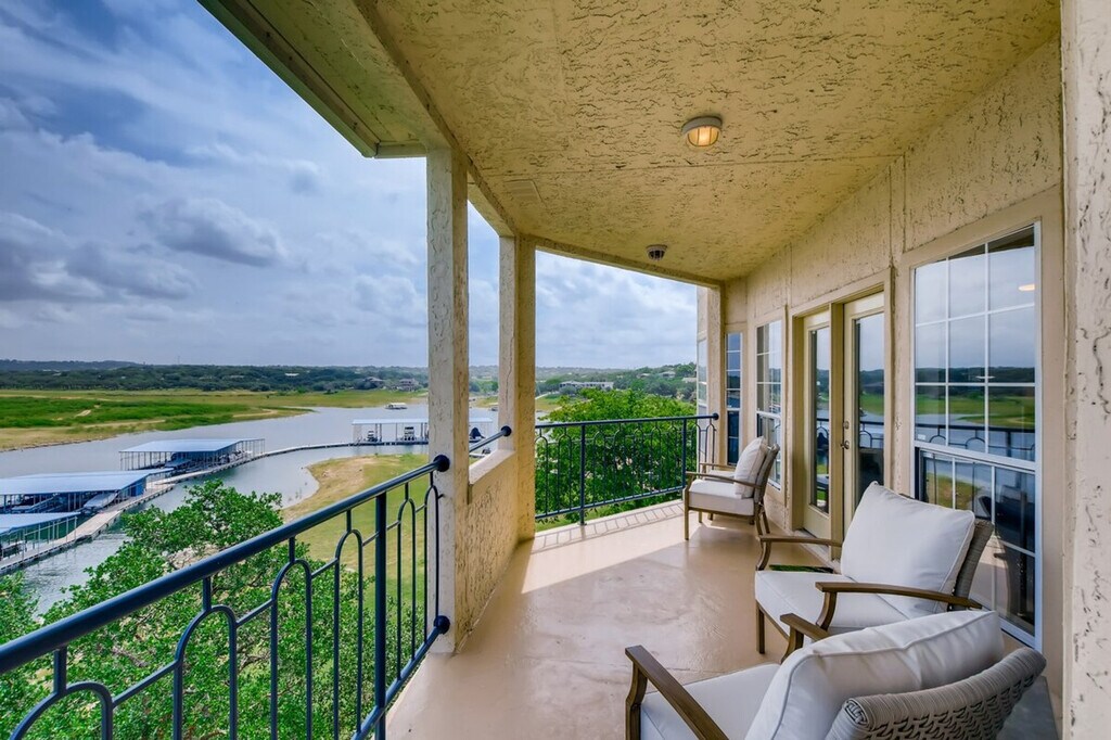 Beautifully Updated Condo Fully Furnished in a Resort-Style Community with Unmatched Lake Travis Views! Welcome to your dream full-time or part time home! This stunning condo, offers breathtaking views of Lake Travis. You'll be captivated by the beautifully updated interiors featuring high-quality flooring, recessed lighting, and contemporary tones. The thoughtfully designed open concept floorplan is filled with large windows that showcase the spectacular views all around. Fully Furnished: Move in or rent out immediately! Internet Included. Modern Kitchen: Stainless steel appliances, crisp white cabinets, built-in coffee bar nook, and breakfast area with a decorative chandelier. Primary Suite: Comfort and privacy with a dual sink vanity, decorative mirrors, impressive soaking tub, and separate frameless shower with marble surround. Private Balcony: Covered with 2 ceiling fans, offering views of an absolute paradise! Resort-Style Community Amenities: Pools: Three pools including one indoor pool. Fitness: Fully equipped fitness center and sauna. Recreation: Large courtyard, sports courts, and more!