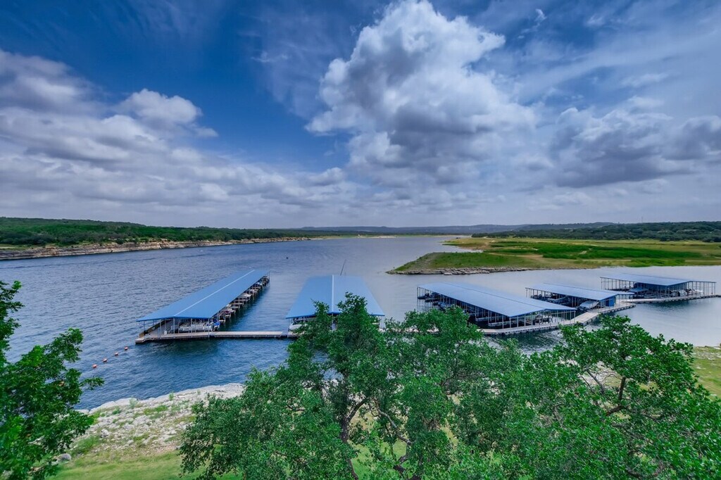 Experience the breathtaking beauty of a waterfront resort villa on Lake Travis. This newly renovated and designer-furnished villa spans 1,750 square feet and features three bedrooms and two bathrooms, comfortably accommodating six to eight guests. The unique wrap-around porch offers panoramic views of the lake, making it easy to feel at home. This villa is a unique haven for relaxation, where guests can unwind with a glass of wine on the balcony and leave behind all their tensions and stress. Treat yourself to a luxury getaway in this beautifully designed space. The villa includes two large covered parking spots and a 26-foot boat slip available for rent. Pets are welcome with an additional fee. Enjoy full access to the island's amenities, including indoor and outdoor pools, a hot tub, a spa and fitness facility, a tennis court, and a picnic area. The villa's prime location offers stunning views and a serene environment. The entire villa and all the resort amenities are yours to enjoy during your stay. [SI]