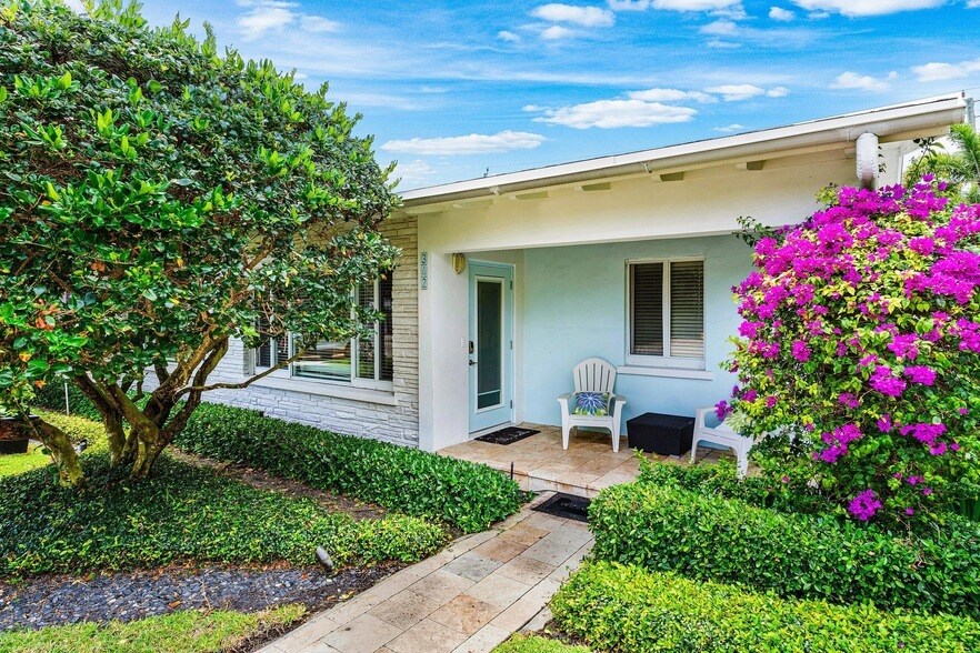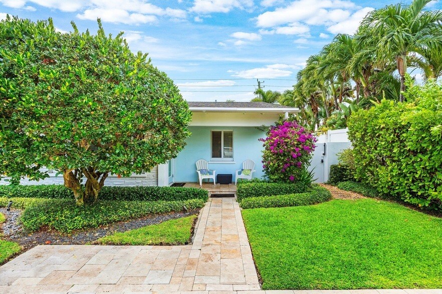 Don't miss this incredible off-season deal, priced to offer exceptional value. Welcome to your own private tropical retreat in the exclusive Palm Trail, just a short stroll from Delray Beach's beautiful shoreline and vibrant Atlantic Avenue. This beautifully appointed 2-bedroom, 1.5-bath villa offers the perfect coastal getaway in the heart of Delray Beach. Offered fully furnished, the home features a spacious private saltwater pool, classic Italian terrazzo flooring, an eat-in kitchen, and lush professionally maintained tropical landscaping. Additional highlights include custom outdoor lighting, an 8-foot privacy fence, & full impact glass throughout. The primary bedroom is designed for comfort, featuring a king-size pillow-top mattress, built-in closet space, and high-quality linens. The guest bedroom offers a queen-size pillow-top bed with luxury linens, set within a charming canopy frame and overlooking the pool. The thoughtfully designed 1.5-bath layout sits conveniently between both bedrooms, creating a Jack-and-Jill style setup with dual vanities and a shared upscale walk-in shower. Step outside to your own private oasis perfect for relaxing or entertaining. The outdoor living space features a 10,000-gallon saltwater pool, ambient lighting that highlights the lush surroundings, a wall-mounted 50" flat-screen TV, and multiple areas for lounging and gathering. It's the ultimate South Florida lifestyle experience. Additional amenities include a 5-burner gas grill, beach chairs and umbrella for your beach outings, and parking for two vehicles directly in front of the villa. Dogs may be considered on a case-by-case basis.