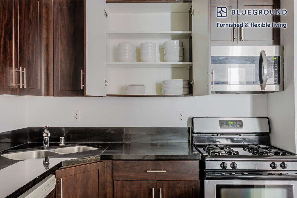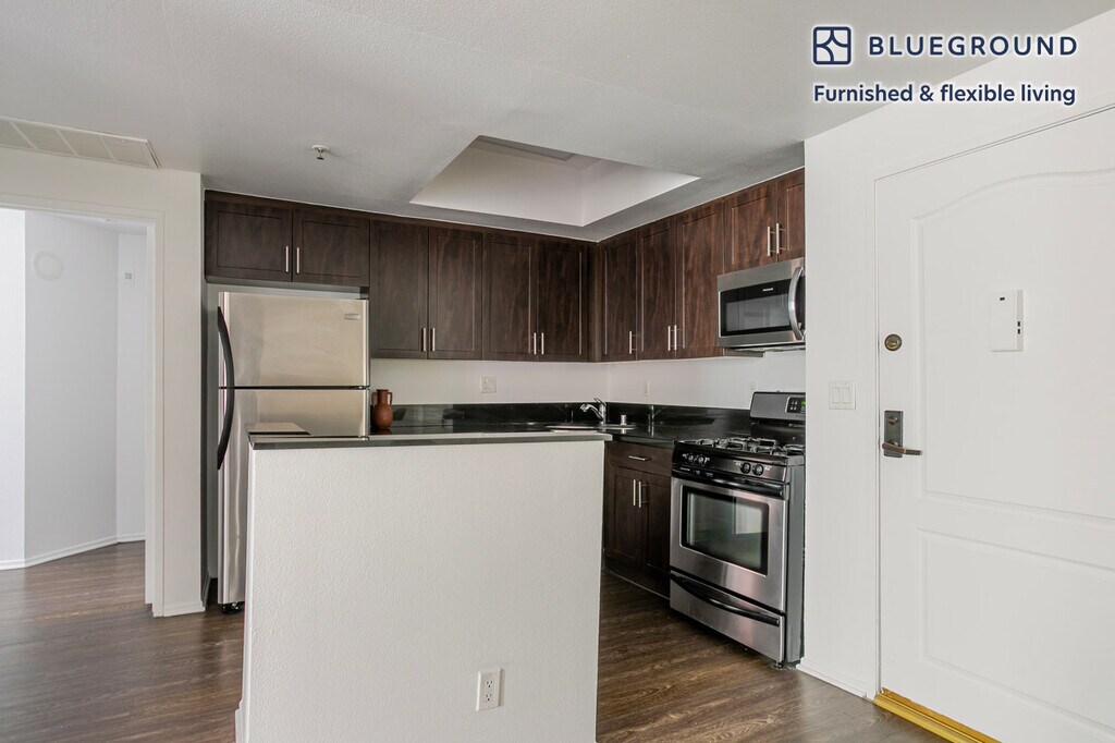 Feel at home wherever you choose to live with Blueground. You’ll love this sophisticated La Brea furnished two bedroom apartment with its modern decor, fully equipped kitchen, and lovely living room. Ideally located, you’re close to all the best that Los Angeles has to offer! (ID #LAX1377) The advertised rate of $2,480/month is the lowest available price, based on a 1 month(s) and 29 day(s) stay with a move-in date of December 20, 2025. If you’re looking for a 1-year stay, the rate is $2,770/month. Rates vary depending on the duration of stay, season, and other parameters. For exact pricing and additional pricing components, please visit our website and enter your desired move-in and move-out dates. The rate is applicable when billed upfront; it can be higher if billed in multiple payments. Brokers are welcome to reach out. Were you looking for an unfurnished lease? Try Blueground instead and upgrade from unfurnished to furnished living: - Furnished at rates comparable to unfurnished - No setup or furniture costs - save thousands - Move-in ready - save time, just bring your suitcase Designed with you in mind Thoughtfully designed with bespoke finishes, modern furnishings, and a fully equipped kitchen, you’ll enjoy that “I’m home” feeling with this Blueground apartment. Whether you’re lounging in your stylish living room streaming the latest and greatest entertainment on the smart TV or premium wireless speaker, or getting some well-earned rest on the superior quality mattress with luxury linens, you’ll fall in love with everything this La Brea apartment has to offer. Sleeping arrangements King Bed, 70.8in/180cm Queen Bed, 63in/160cm Amenities Building amenities unique to this two bedroom apartment include an on-site: - Dryer in building - Elevator - Washing machine in building - Parking - Pets allowed - Rooftop BBQ Arrival and ongoing support The entire apartment is yours to enjoy! Throughout your stay, you’ll have access to our Client Experience team through the Blueground App. You can schedule additional cleanings, submit maintenance requests, and view our neighborhood recommendations with just a few taps. We’ll share all details upon confirmation of your stay. Other things to note Building amenities may have an extra cost. This Blueground apartment has flexible lease options, allowing you to book it for one month, a year, or more. Pets are welcome, though weight limits and breed restrictions apply and may incur fees. Parking is offered based on availability and is subject to a fee. We take great pride in ensuring every photo displayed is shot in our own units with our actual furnishings. That said, we regularly refresh our decor and furniture arrangement, which may differ from what’s pictured. [SI]