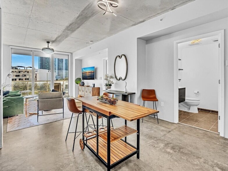 New and modernly furnished residence completely renovated in 2025 offering urban city living at 2 Midtown Miami. Unit 504 features an open-concept layout with floor-to-ceiling windows providing abundant natural light and dynamic Midtown views. Contemporary kitchen with sleek cabinetry, stainless steel appliances, and ample counter space ideal for entertaining. Spacious bedroom with generous closet space and modern ensuite plus half bath with clean, refined finishes. In-unit washer/dryer and private balcony complete the residence. Full-service building with 24-hour security, concierge, resort-style pool, fitness center, and secure parking. Prime Midtown location minutes from dining, shopping, and to Wynwood, Design District, Miami Beaches & 20 minutes to Miami International, welcome home to 2 MIDTOWN!
