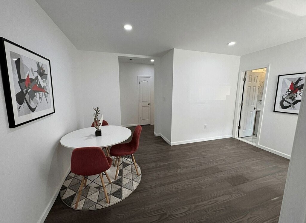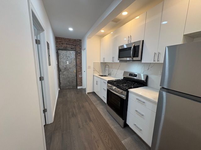 Discover modern living in this newly renovated two-bedroom plus den (flexible as a third bedroom) with one full bath, perfectly located in the heart of Journal Square. This spacious home boasts a large open floor plan, beautiful gray-style flooring, and a sleek kitchen with stainless steel appliances, custom cabinetry, and upgraded countertops. The rent conveniently includes heat and hot water, and residents enjoy access to a shared laundry room in the building. Just steps from the Journal Square PATH Station, this apartment offers an easy commute into Manhattan and is surrounded by local eateries, shops, and universities; the ideal combination of comfort, style, and convenience. Some photos have been virtually staged for illustration purposes.