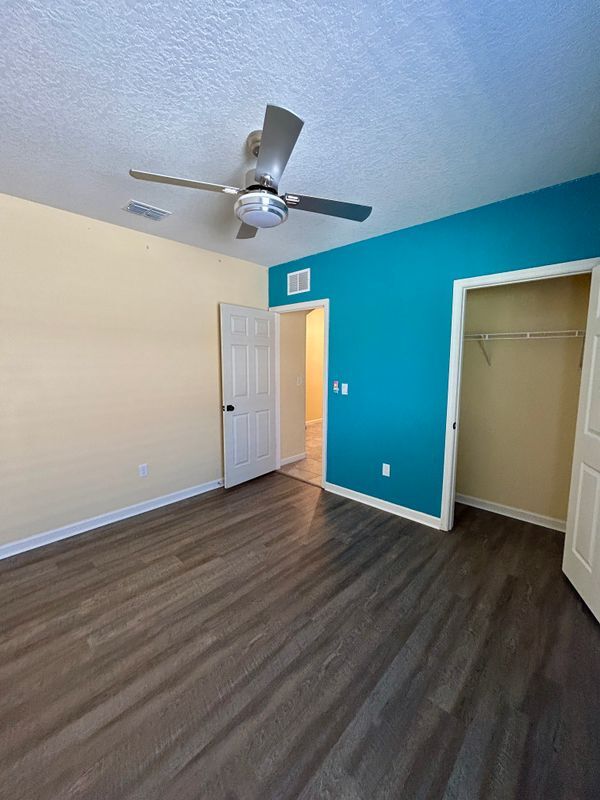 Welcome to this spacious and well-maintained 3-bedroom, 2-bath home located in the highly desirable Dunes at Indian River Preserve - a beautiful golf community. Tucked away on a peaceful cul-de-sac, this property offers comfort, privacy, and resort-style living. Step inside to an inviting open kitchen and living room floor plan featuring a kitchen island, perfect for meal prep, entertaining, or gathering with family and friends. The kitchen also includes a custom organized pantry, providing convenient and efficient storage. The home features tile and laminate flooring throughout, making it both stylish and easy to maintain. The split floorplan offers exceptional privacy, with the primary suite tucked away from the secondary bedrooms. The primary suite includes a walk-in closet equipped with a built-in closet system for effortless organization. Additional thoughtful features include remote-controlled ceiling fans and hurricane shutters available for tenant use, offering comfort and peace of mind year-round. The home is also equipped with solar panels. Step outside to a partially fenced backyard, ideal for added privacy, pets, or weekend gatherings. Just beyond your doorstep, the neighborhood also offers a walking trail, perfect for morning jogs or peaceful evening strolls. Residents can also enjoy the conveniences of living within the Indian River Preserve community, including access to the on-site clubhouse. Love golf? You’ll appreciate the Indian River Preserve Golf Club, which features an 18-hole championship course with flexible single-play or monthly membership options. With just a 30-minute drive to Port Canaveral and the Kennedy Space Center, this home blends comfort, convenience, and community living—perfect for anyone looking to enjoy the best of the Space Coast.