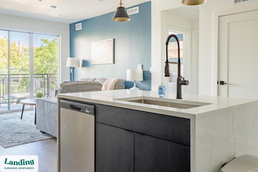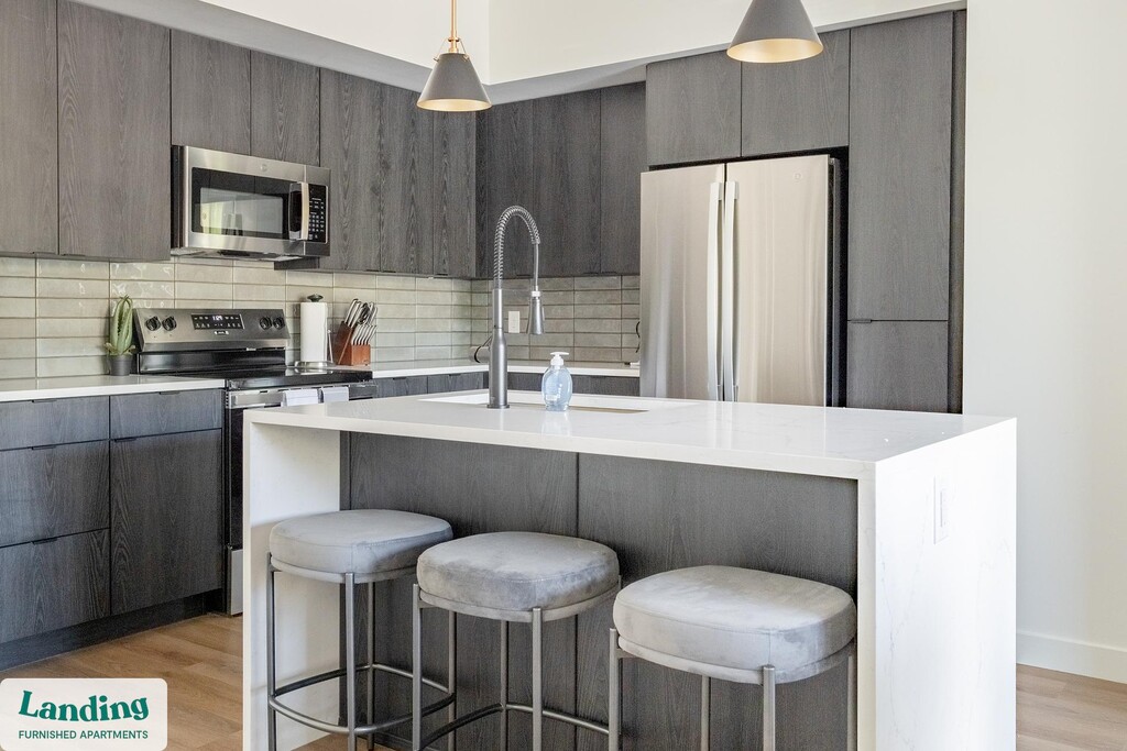 Landing offers flexible lease terms from weeks to months. Please always visit our website or contact us for the latest pricing & availability. Stay longer, save more: 6-Month Minimum base rent: starts at $3099/mo 12-Month Minimum base rent: starts at $2781/mo Landing offers flexible leases across a network of over 35,000 fully-furnished apartments throughout 375+ cities so you can rent on your terms, practically anywhere, and avoid the hassle of paying deposits or application fees. Visit to learn about all the benefits of a Landing membership, see our competitive up-to-date pricing, explore available apartments, take virtual tours, and make reservations online without jumping through traditional rental hoops. Landing's apartments at Liberty Duet are designed for comfortable, easy living, with the ability to stay as long as you like. Experience living with Landing Every apartment is outfitted with all the modern essentials including: custom-designed furnishings, a fully-equipped kitchen with deluxe stainless steel appliances, a gourmet coffee maker, premium linens, Smart TVs, and incredibly fast, reliable internet for working from home. When you live with Landing, you'll enjoy a hassle-free experience with the added benefit of 24/7 access to our dedicated member experience team. Some of the nitty-gritty: a background check and proof of income are required; we're completely smoke-free; bundled utility packages and pricing vary based on length of stay; pet-friendly options available; listed price reflects a 12-month minimum stay.