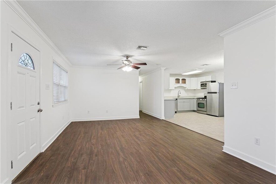 Updated 3 bedroom 2 bath home in great location in Kenner. Open floorplan with Stainless steel appiances in kitchen. Appliance provided by owner are: refrigerator, range oven, dishwasher and microwave.Updated bathrooms - Tile floors in kitchen - wood vinyl in all bedrooms, laundry & living and dining rooms.Corner lot which is fenced and off street parking. Tenant pays all utilities.
