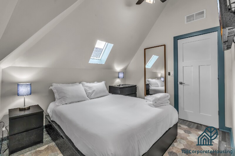 Property Id: 2266454 Exclusive discounts for travel professionals and academic visitors. Message us now for a potential discount! Welcome to this affordable apartment! We have two units available ~ one on the second floor and the other 3rd floor. Ideal for healthcare workers & students, it boasts new appliances and furnishings. Secure your spot & enjoy our exclusive introductory offer for our new listing! Each bedroom has a queen size mattress with a 50 inch smart TV and the luxury of a personal full bathroom! The space Midtown is a distinctly urban and multi-cultural neighborhood that is beginning a renaissance. If you are looking for a suburban setting, check out some of our other listings. * 2 Queen size beds & 2 FULL bathrooms (each unit) * Everything is brand new! * Heating and cooling system * Dishwasher * Fully equipped kitchen * Private balcony * FREE In-unit laundry * FREE gated parking * FAST WIFI * Cable and streaming services * Two doors down from Subway station (minutes from Medical district) This two bedroom two bath apartment is perfect for medical professionals staying in buffalo for 30+ days! It is just minutes from the medical district. We have two units available ~ you can rent both at the same time! Situated just steps away from the bus stop and subway station at Main and E Utica, these apartments offer exceptional accessibility. They're only one subway stop south of the Canisius area and two stops north of the Allen Medical Corridor. Guest access There are two units: one on the second floor and the other on the third floor. Enjoy the privacy of your two-bedroom, two-bathroom apartment in a secure apartment complex. Each unit comes equipped with an in-unit washer and dryer for your convenience. The apartment offers secured parking within the gated lot. The building is always locked and requires a pin code for access, making the entire building keyless for your peace of mind.