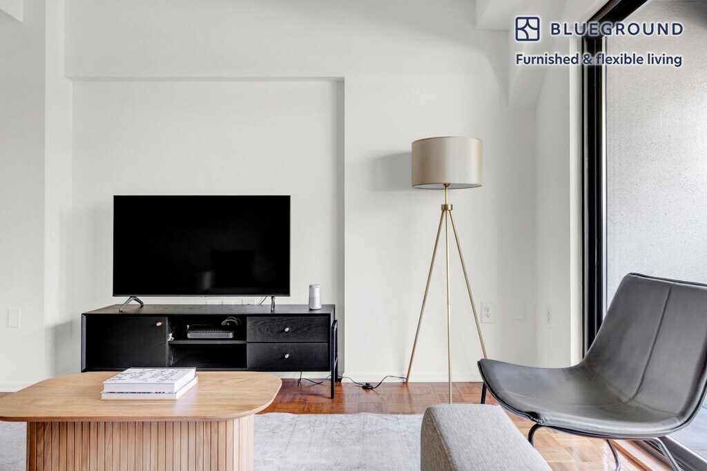 Discover the best of New York, with this two bedroom duplex in Midtown South with balcony views over the city. It’ll be easy to simply show up and start living in this furnished duplex with its fully equipped kitchen, living room, and our dedicated, on-the-ground support. (ID #NYC676) The advertised rate of $6,640/month is the lowest available price, based on a 11 month(s) and 29 day(s) stay with a move-in date of February 15, 2026. Rates vary depending on the duration of stay, season, and other parameters. For exact pricing and additional pricing components, please visit our website and enter your desired move-in and move-out dates. The rate is applicable when billed upfront; it can be higher if billed in multiple payments. Brokers are welcome to reach out. Were you looking for an unfurnished lease? Try Blueground instead and upgrade from unfurnished to furnished living: - Furnished at rates comparable to unfurnished - No setup or furniture costs - save thousands - Move-in ready - save time, just bring your suitcase Designed with you in mind Thoughtfully designed with bespoke finishes, modern furnishings, and a fully equipped kitchen, you’ll enjoy that “I’m home” feeling with this Blueground duplex. Whether you’re lounging in your lovely living room streaming the latest and greatest entertainment on the smart TV or premium wireless speaker, or getting some well-earned rest on the superior quality mattress with luxury linens, you’ll fall in love with everything this Midtown South duplex has to offer. This duplex also offers in-floor laundry. Sleeping arrangements King Bed, 70.8in/180cm Queen Bed, 63in/160cm Amenities Building amenities unique to this two bedroom duplex include an on-site: - Doorman - Dryer of floor - Elevator - Washing machine on floor - Pets allowed Arrival and ongoing support The entire duplex is yours to enjoy! Throughout your stay, you’ll have access to our Client Experience team through the Blueground App. You can schedule additional cleanings, submit maintenance requests, and view our neighborhood recommendations with just a few taps. We’ll share all details upon confirmation of your stay. Ideally Located This furnished apartment is located in Midtown South, the city’s high tech sector. Midtown South is generally used to refer to the portion of Midtown that is below 42nd Street. This central location allows residents to be just a short walk or ride away from some of the city's most famous landmarks and institutions. For instance, the Main Branch of the New York Public Library and the iconic Empire State Building. For a breath of fresh air, visit Bryant Park - known as Manhattan’s Town Square. The gorgeous residential high-rises in this neighborhood offer spectacular city views. Other things to note This Blueground duplex has flexible lease options, allowing you to book it for one month, a year, or more. Pets are welcome, though weight limits and breed restrictions apply and may incur fees. Brokes CYOF. We take great pride in ensuring every photo displayed is shot in our own units with our actual furnishings. That said, we regularly refresh our decor and furniture arrangement, which may differ from what’s pictured. [SI]