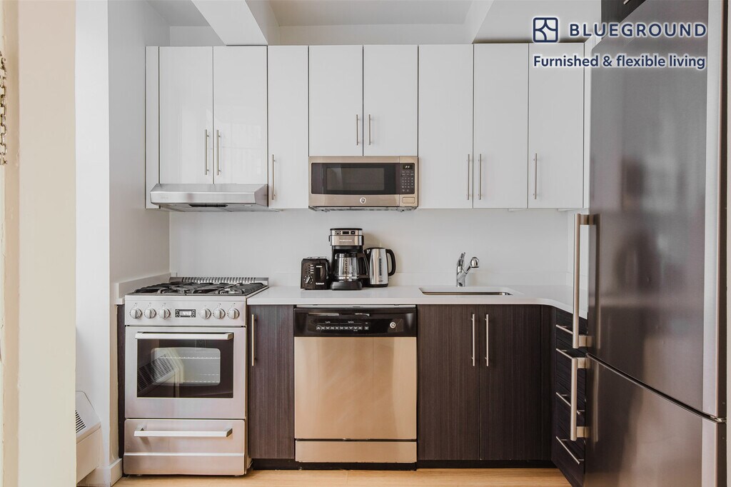 Show up and start living from day one in New York with this sophisticated one bedroom Blueground apartment. You’ll love coming home to this thoughtfully furnished, beautifully designed, and fully equipped Midtown South home with stunning views over the city. (ID #NYC528) The advertised rate of $5,360/month is the lowest available price, based on a 1 month(s) and 3 day(s) stay with a move-in date of January 1, 2026. If you’re looking for a 1-year stay, the rate is $5,950/month. Rates vary depending on the duration of stay, season, and other parameters. For exact pricing and additional pricing components, please visit our website and enter your desired move-in and move-out dates. The rate is applicable when billed upfront; it can be higher if billed in multiple payments. Brokers are welcome to reach out. Were you looking for an unfurnished lease? Try Blueground instead and upgrade from unfurnished to furnished living: - Furnished at rates comparable to unfurnished - No setup or furniture costs - save thousands - Move-in ready - save time, just bring your suitcase Designed with you in mind Thoughtfully designed with bespoke finishes, modern furnishings, and a fully equipped kitchen, you’ll enjoy that “I’m home” feeling with this Blueground apartment. Whether you’re lounging in your beautiful living room streaming the latest and greatest entertainment on the smart TV or premium wireless speaker, or getting some well-earned rest on the superior quality mattress with luxury linens, you’ll fall in love with everything this Midtown South apartment has to offer. This apartment also offers in-floor laundry. Sleeping arrangements Queen Bed, 63in/160cm Amenities Building amenities unique to this one bedroom apartment include an on-site: - Doorman - Dryer of floor - Elevator - Washing machine on floor - Pets allowed Arrival and ongoing support The entire apartment is yours to enjoy! Throughout your stay, you’ll have access to our Client Experience team through the Blueground App. You can schedule additional cleanings, submit maintenance requests, and view our neighborhood recommendations with just a few taps. We’ll share all details upon confirmation of your stay. Ideally Located This furnished apartment is located in Midtown South, the city’s high tech sector. Midtown South is generally used to refer to the portion of Midtown that is below 42nd Street. This central location allows residents to be just a short walk or ride away from some of the city's most famous landmarks and institutions. For instance, the Main Branch of the New York Public Library and the iconic Empire State Building. For a breath of fresh air, visit Bryant Park - known as Manhattan’s Town Square. The gorgeous residential high-rises in this neighborhood offer spectacular city views. Other things to note This Blueground apartment has flexible lease options, allowing you to book it for one month, a year, or more. Pets are welcome, though weight limits and breed restrictions apply and may incur fees. Brokes CYOF. We take great pride in ensuring every photo displayed is shot in our own units with our actual furnishings. That said, we regularly refresh our decor and furniture arrangement, which may differ from what’s pictured. [SI]