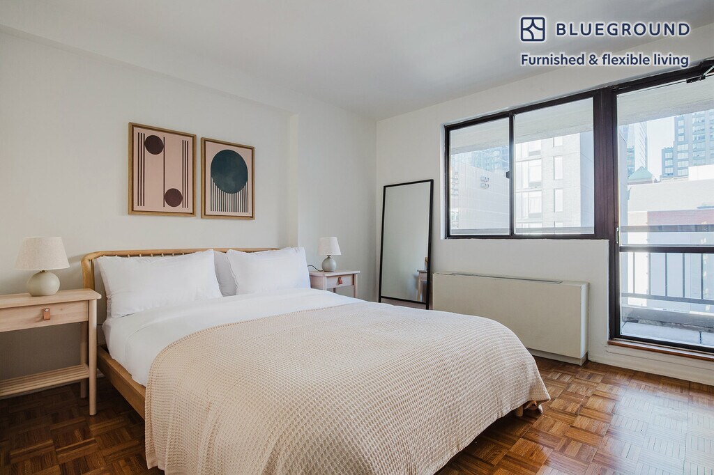 Show up and start living from day one in New York with this charming two bedroom Blueground duplex. You’ll love coming home to this thoughtfully furnished, beautifully designed, and fully equipped Manhattan home with stunning balcony views over the city. (ID #NYC1707) The advertised rate of $6,610/month is the lowest available price, based on a 12 month(s) stay with a move-in date of May 19, 2026. Rates vary depending on the duration of stay, season, and other parameters. For exact pricing and additional pricing components, please visit our website and enter your desired move-in and move-out dates. The rate is applicable when billed upfront; it can be higher if billed in multiple payments. Brokers are welcome to reach out. Were you looking for an unfurnished lease? Try Blueground instead and upgrade from unfurnished to furnished living: - Furnished at rates comparable to unfurnished - No setup or furniture costs - save thousands - Move-in ready - save time, just bring your suitcase Designed with you in mind As with any Blueground duplex, you’ll find a thoughtfully designed space complete with beautiful furniture and a fully equipped kitchen in this two bedroom property. And, thanks to our superior quality mattresses, luxury linens, and towels, you can relax knowing you’ll always feel comfortably at home. When you’re ready for some fun, you can take in the New York vibes or bring the entertainment to you with the premium wireless speaker or smart TV. Sleeping arrangements Queen Bed, 63in/160cm Queen Bed, 63in/160cm Amenities Building amenities unique to this two bedroom duplex include an on-site: - Doorman - Dryer in building - Elevator - Washing machine in building - Pets allowed Arrival and ongoing support The entire duplex is yours to enjoy! Throughout your stay, you’ll have access to our Client Experience team through the Blueground App. You can schedule additional cleanings, submit maintenance requests, and view our neighborhood recommendations with just a few taps. We’ll share all details upon confirmation of your stay. Other things to note This Blueground duplex has flexible lease options, allowing you to book it for one month, a year, or more. Pets are welcome, though weight limits and breed restrictions apply and may incur fees. Brokes CYOF. We take great pride in ensuring every photo displayed is shot in our own units with our actual furnishings. That said, we regularly refresh our decor and furniture arrangement, which may differ from what’s pictured. [SI]
