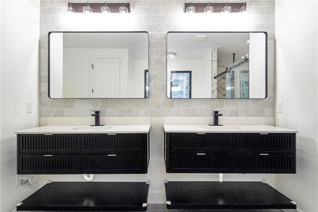 Property Highlights: Secluded Cul-de-sac. Sleek two-car garage finished with durable, showroom-style epoxy flooring. Expansive 5-bedroom, 4-bath residence offering approximately 3,610 square feet of thoughtfully designed living space. Dramatic floor-to-ceiling 8-foot windows flood the home with natural light. Entertain in style around the stunning 9-foot waterfall kitchen island, the true centerpiece of the home. Seamless indoor-outdoor living through an impressive 8-foot sliding glass door. A one-of-a-kind backyard bridge leading to your own private oasis-a serene retreat perfect for relaxing or entertaining under the stars, with two connecting, natural streams that create a peaceful and restful sound to your ears. Two fireplaces, anchoring both the living area and primary suite with warmth and ambiance. Designer two-toned Euro-style cabinetry featuring polished and matte high-gloss finishes. Soaring 10-foot ceilings create an open, airy feel throughout. Contemporary floating vanities with elegant under-vanity lighting. Premium solid-core interior doors for enhanced privacy and sound control. Energy-efficient LED lighting throughout the home. Dedicated laundry room for everyday convenience. Statement-making luxury light fixtures elevate each space. Spa-inspired primary bath with a 5-foot freestanding soaking tub. Dual shower controls with indulgent overhead rain shower faucets. Spacious walk-in primary closet designed for modern living. Built-in wine storage, perfect for collectors and entertainers alike Location & Lifestyle: Direct access to over 400 acres of green space, trails, and outdoor recreation. Zoned for highly regarded Sarah Smith Elementary School. Exceptional walkability and bikeability, ideal for an active lifestyle. Moments from iconic dining, including Hal's Steakhouse, shopping, and entertainment.
