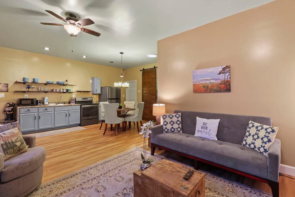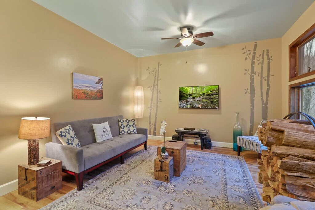 Welcome to "The Carriage House," a charming mountain escape at the top of Beech Mountain. This cozy home features an open-plan living area with large windows, a fully equipped kitchen, and an inviting dining area. It offers two comfortable bedrooms with premium linens and a relaxing outdoor area with firepits and trails. Enjoy memorable evenings by the indoor wood-burning fireplace. As you enter "The Carriage House," you're welcomed by a cozy open-plan living area with large windows, designed and furnished with numerous amenities throughout the interior. The fully equipped kitchen and inviting dining area open onto the attractive living room, setting the tone for many memorable evenings. Explore and play in the river, or take a short hike on one of the trails right on the property. The living area immediately feels like home, perfect for gathering with friends and family while enjoying mesmerizing outdoor views. Early check-in and late check-out are subject to availability with a $25 per hour fee. Reach out to the host to inquire. The house is situated in the small vacation town of Beech Mountain, NC. Its remote location and small-town charm offer a wonderful ambiance and a place to relax and refresh. The serene setting and mesmerizing natural surroundings provide plenty of attractions and places of interest for you to visit. Both Beech Mountain and Banner Elk offer skiing, snowboarding, snow tubing, eco-tourism, zip-lining, mountain biking, off-road ATVs, rafting, fly fishing, hiking, golf, fine dining, and shopping all at your fingertips. We highly suggest using a 4WD during the winter months. The firepit is not for bonfires, so please keep it to small, reasonable fires and only burn firewood. Firewood is not provided, but there are multiple places in town to buy it. Quiet hours are between 22:00 and 08:00. No smoking is allowed, and only registered guests may stay overnight. This is a privately owned home, and the owners aren’t responsible for accidents, injuries, or loss of belongings. By booking, guests assume all risks. Keep the property and furnishings in good order and use appliances as intended. Linens are provided, but there is no daily housekeeping.