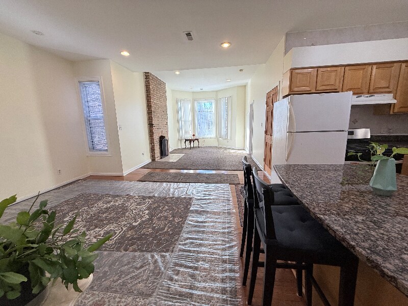 Property Id: 2314536 Bright, updated top-floor 3 Bedroom/1 Bath unit in an intimate 3-flat on a quiet, tree-lined street steps from McKinley Park. Condo-quality home with open kitchen featuring stone breakfast bar, ample cabinetry, and adjoining dining area. Spacious living room with skylights, recessed lighting, exposed brick, and decorative fireplace. Three bedrooms, including one ideal for a home office. Hardwood floors with carpeted bedrooms, central heat and air, in-unit laundry, generous closet space, and outdoor space for seasonal use. Convenient to Orange Line, Western & Archer bus routes, restaurants, cafes, and local shops. Move-in ready and easy to show. Pets OK (max 2; dogs under 20 lbs).