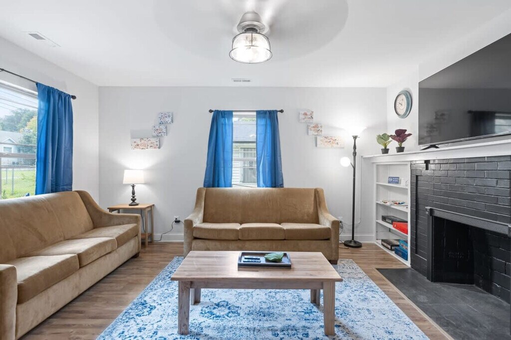Crafty on Hoyt offers the perfect Chattanooga getaway, providing a cozy retreat that sleeps 12. Nestled just outside the city's hustle, this charming home allows you to enjoy fresh mountain air on the front porch while being conveniently close to everything. It's just 5 minutes to Overlook Park, 10 minutes to the Chattanooga Zoo, and minutes from downtown attractions like the Tennessee Aquarium, Bluff View Art District, Lookout Stadium, and shopping. Enter the home through the front door using a code provided at check-in. The living room welcomes you with two sleeper sofas and a 50" Roku TV. Beyond the living room is a full kitchen and dining table with bench seating. The hallway off the kitchen leads to three bedrooms and two bathrooms. The master bedroom features a king bed and an en-suite bathroom. The second bedroom has two full beds, and the last bedroom includes a queen bed. A shared bathroom is located in the hallway. A washer and dryer are conveniently situated near the kitchen. Don't forget to check out the open backyard with a charcoal grill and picnic table. Pets are welcome with a non-refundable per-pet fee. Pets must be crated when left unattended, are not allowed on furniture or beds, and all waste must be cleaned up from the yard. If there is evidence of pet hair on the furniture, excess hair in the home, stains, or waste found in the yard or home, you will be charged the cost to clean this. Located in a transitioning neighborhood, this home offers a family-friendly environment with no security issues reported. However, guests have varied opinions about the neighborhood. Parking is limited in this downtown area, but there is room for two cars in the driveway. Uber and Lyft are readily available for convenient transportation. This home features a ring security system and digital door lock for remote entry, providing a sense of privacy and security. Guests must be at least 21 years old to book. Smoking is prohibited, and any signs of smoking will incur a $500 damage charge. Parties are not allowed, and quiet hours are between 10 PM and 7 AM. Violating quiet hours may result in reservation cancellation without a refund. Guests are responsible for any damage to the home or its furnishings during their stay. Excessive trash left at the property will incur a $100 charge for third-party removal. Registration Number: STVR-21-206