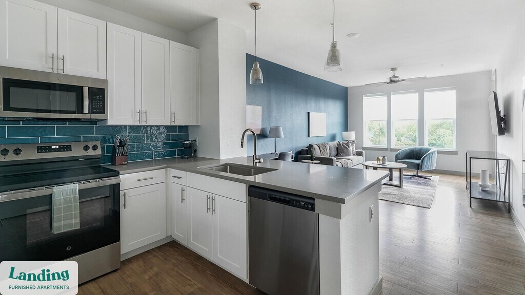 Landing offers flexible lease terms from weeks to months. Please always visit our website or contact us for the latest pricing & availability. Stay longer, save more: 6-Month Minimum base rent: starts at $2460/mo 12-Month Minimum base rent: starts at $2060/mo Landing offers flexible leases across a network of over 35,000 fully-furnished apartments throughout 375+ cities so you can rent on your terms, practically anywhere, and avoid the hassle of paying deposits or application fees. Visit to learn about all the benefits of a Landing membership, see our competitive up-to-date pricing, explore available apartments, take virtual tours, and make reservations online without jumping through traditional rental hoops. Landing's apartments at The Goodwin are designed for comfortable, easy living, with the ability to stay as long as you like. Experience living with Landing Every apartment is outfitted with all the modern essentials including: custom-designed furnishings, a fully-equipped kitchen with deluxe stainless steel appliances, a gourmet coffee maker, premium linens, Smart TVs, and incredibly fast, reliable internet for working from home. When you live with Landing, you'll enjoy a hassle-free experience with the added benefit of 24/7 access to our dedicated member experience team. Some of the nitty-gritty: a background check and proof of income are required; we're completely smoke-free; bundled utility packages and pricing vary based on length of stay; pet-friendly options available; listed price reflects a 12-month minimum stay.
