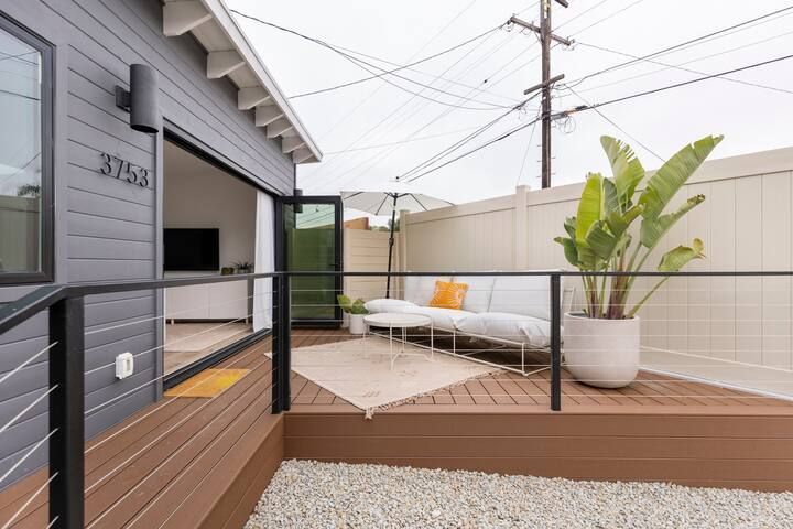 Welcome to a private, detached studio casita in beautiful Point Loma—perfect for professionals, traveling nurses, or anyone looking for a peaceful long-term stay in one of San Diego’s best neighborhoods. Our guests consistently highlight the spotless cleanliness, quiet setting, and great location in their stays. The casita is tucked behind our main home with its own entrance and dedicated off street parking, offering privacy while still being close to everything San Diego has to offer. There's a beautiful private deck that has a La Cantina bifold door to allow for full indoor/outdoor living. The kitchen and bathroom are designed with bespoke Concrete Collaborative tile and the studio is beautifully furnished with West Elm. Walk or bike to local restaurants, coffee shops, grocery stores, and the bay. Ocean Beach, Sunset Cliffs, Liberty Station, downtown, and the airport are all just minutes away.