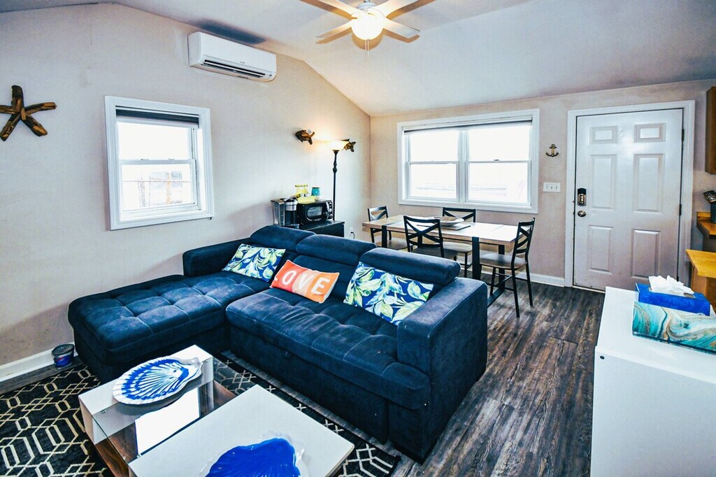 Welcome to Love Shack, a newly furnished 1-bedroom cottage located across the street from the marshes at Salisbury Beach. This light and airy cottage is the perfect retreat for couples, offering sunset views from the main room. Enjoy a short walk to many amenities in Salisbury Beach, including shows at Blue Ocean, romantic dinners at Sea Glass, and leisurely strolls back to Love Shack. Start your day sipping coffee on the private deck. Spend your days at the beautiful Salisbury Beach or enjoying the arcades and carousel on the boardwalk. With 3 clubs and 10 restaurants within a 10-minute walk, you can dance all night knowing you are just steps from home. The cottage features a divan couch in front of a big screen TV, a table with seating for four, and new central AC/heat with mini-splits. The fully equipped kitchen includes a Keurig coffee maker, toaster, blender, microwave, full-size refrigerator, and gas stove with oven. The private deck is sheltered on two sides by the cottage, and the full bathroom includes a shower, jetted tub, and hair dryer. A stacked washer and dryer are also available. Off-street parking for up to 2 cars is included in the rental rate. For family-friendly homes, a luxury Pack-n-Play or other children's furnishings are available for an additional charge as availability permits. Salisbury Beach is included in the Boston Mamas' 10 Most Awesome Boston-Area Beaches. In addition to great strolling, surfing, and sunning, the Salisbury Beach area offers music and shows at the Salisbury Beach Stage and Blue Ocean Music Hall, a carousel and amusement park, and many biking trails like Salisbury Beach State Reservation Trail and Salisbury Point Ghost Trail. Enjoy cruises for dinner, fishing, or whale watching, nature walks at Parker River National Wildlife Reservation, and numerous Audubon and Trustees of the Reservation sites. For family fun, pick berries at Cider Hill Farm or pan for gold with American Gold Prospecting Adventures. History buffs will appreciate the area's rich seafaring and colonial history, with nearby attractions like the Lowell Ship Building Museum and Newburyport Maritime Museum. Smoking is strictly prohibited. Guests will be fined and immediately evicted for smoking or vaping in the home or on the property. No parties, events, performing artists, or bands are allowed at any time. These are cause for eviction with no refund. If any damage impacts our ability to offer the home for future guests, you will be held liable. During peak season, this home has a strict no pets policy. However, small to medium dogs are considered on a case-by-case basis for extended-stay, off-season guests only, with additional fees applying. Pets left alone at the home will need to be crated. Quiet hours are between 10 PM and 8 AM. Please follow all parking instructions and only use those spaces allotted to Love Shack. Guests enter Love Shack from the front door, and the property is considered mobility friendly, with one-floor living possible, few stairs to enter, and easy access bathing options. Love Shack provides high-speed internet services, meeting the needs of guests traveling for both work and pleasure. A laptop computer is not included. [SI]