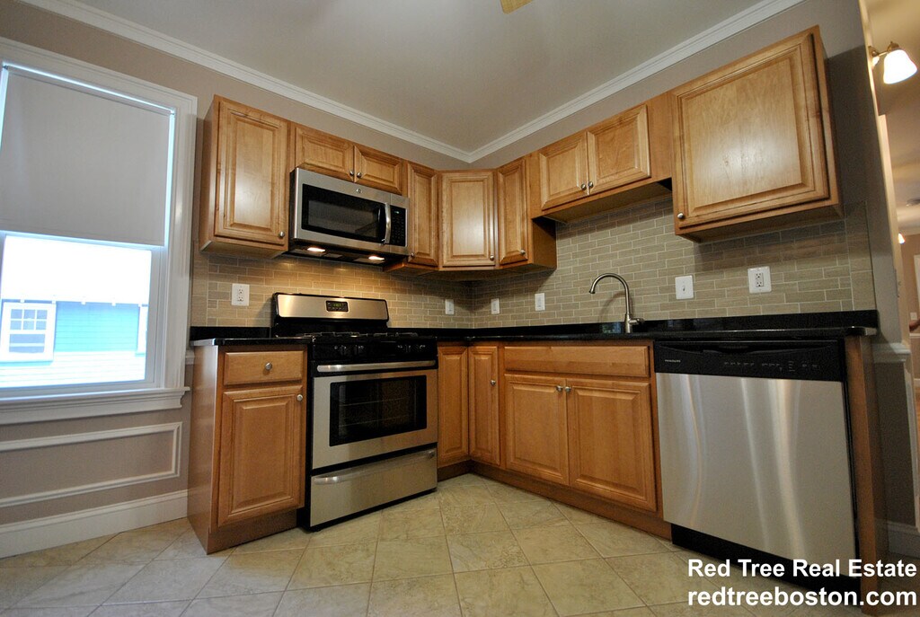 3 bedroom ultra modern newly renovated Eat-in Kitchen, granite and stainless steel appliance dishwasher and disposal Modern bathroom with tub shower Hydro - air HVAC Ceiling fans in all rooms washer and dryer in unit 3 off street parking spots (one garaged) Building sits close to Oak Square. Parks, shops, and restaurants nearby. Within walking distance to everything. Close to Boston College. Fee Disclosure: First Month Rent: $3,750 Last Month Rent: $3,750 Security Deposit: $3,750