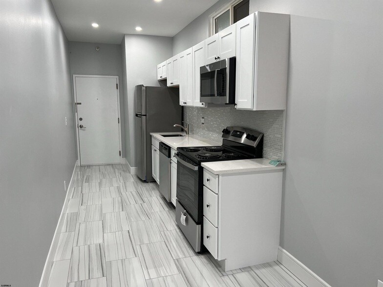 YEARLY RENTAL! Recently renovated penthouse unit offering a large one bedroom and one bathroom, located in the desirable Lower Chelsea neighborhood, just half a block from the beach and boardwalk, where coastal living meets city vibes. Enjoy breathtaking ocean views from your private balcony, along with stunning views of the Atlantic City skyline. This stylish unit features brand-new appliances, including a full-size refrigerator, stove, dishwasher, microwave, washer, and dryer, plus a cozy fireplace, ductless mini-split wall units, dimmer lighting, and generous storage throughout. Street parking is available by permit, or opt for convenient garage parking at the Stockton Garage for only $50 per month. A rare find in an unbeatable location!!