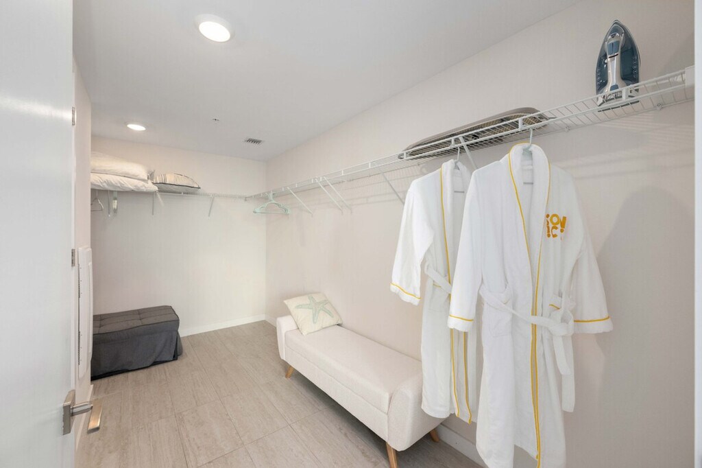Welcome to your luxury apartment in the heart of Miami, located on the 8th floor with 1,280 square feet of space. This brand new apartment features a minimalist interior design, modern furniture, and a bright living room with a balcony offering city views. The apartment includes 1 bedroom and 2 bathrooms, fully equipped to accommodate up to 4 guests. Enjoy the convenience of free parking, BBQ zones, two pools, a fully equipped gym, and 24-hour front desk service. Feel at home in this boutique condo in the Miami Design District. The apartment boasts a bright living room beside a balcony, perfect for enjoying the beautiful Miami Design District with a morning coffee or for those looking to work from home. The main room features a queen-size bed, a walk-in closet, and its own entrance to the balcony, along with a full bathroom with a neat glass shower. The dining room is comfortable, and the spacious kitchen includes an island for quick breakfasts and new home appliances for your use. Relax at the delightful pool with beach chairs or work out in the well-equipped fitness center and enjoy the beautiful lounge. The building offers free parking, and you can enjoy the pools and gym at no additional cost. Located steps away from the Miami Design District, this apartment is just a 10-minute drive from the beach and less than 15 minutes from Miami's dynamic districts where culture, cuisine, art, and entertainment come together. Nearby points of interest include The Moore Building, Pedestrian Walkway, Buckminster Fuller’s Fly’s Eye Dome, Palm Court, Albert Pallot Park, and many more. Smoking is not allowed in the unit, with a smoking fee of $200 USD if violated. Losing your FOB, car access card, or keys incurs a fine of $150 USD each. No pets are allowed, and the condo has a no-partying policy. High noise levels after hours could lead to issues with security staff. Guests must be over 21 years old to book. [SI]