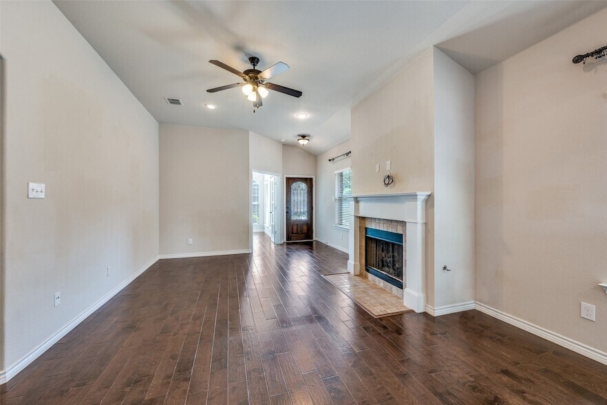 Well-maintained move-in ready 3-bedroom, 2-bath home with a flexible office that can serve as a 4th bedroom, located in the established Fossil Creek community near the golf course. This one-story home offers a comfortable layout with a spacious living area featuring vaulted ceilings, a fireplace, and abundant natural light. The kitchen is both functional and inviting with stainless steel appliances, ample cabinet space, breakfast bar, and refrigerator included, opening to a casual dining area for everyday living. The additional room includes a closet and French doors, providing flexibility for a home office or 4th bedroom. The primary suite offers dual sinks, a garden tub, separate shower, and walk-in closet. Secondary bedrooms are well-sized and thoughtfully positioned. Additional features include wood flooring in main areas, a separate utility room with washer and dryer included, 2-car garage, and a private fenced backyard with patio. Located just minutes from Fossil Creek Golf Course with quick access to Loop 820 and I-35W, making commuting, shopping, and dining convenient. Zoned to Keller ISD. Available for immediate move-in.