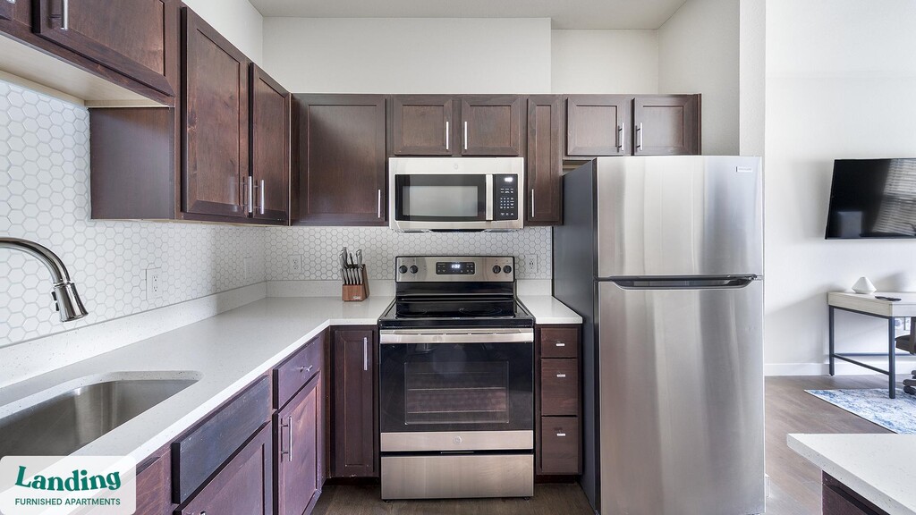 Landing offers flexible lease terms from weeks to months. Please always visit our website or contact us for the latest pricing & availability. Stay longer, save more: 6-Month Minimum base rent: starts at $1828/mo 12-Month Minimum base rent: starts at $1828/mo Landing offers flexible leases across a network of over 35,000 fully-furnished apartments throughout 375+ cities so you can rent on your terms, practically anywhere, and avoid the hassle of paying deposits or application fees. Visit to learn about all the benefits of a Landing membership, see our competitive up-to-date pricing, explore available apartments, take virtual tours, and make reservations online without jumping through traditional rental hoops. Landing's apartments at The Edge are designed for comfortable, easy living, with the ability to stay as long as you like. Experience living with Landing Every apartment is outfitted with all the modern essentials including: custom-designed furnishings, a fully-equipped kitchen with deluxe stainless steel appliances, a gourmet coffee maker, premium linens, Smart TVs, and incredibly fast, reliable internet for working from home. When you live with Landing, you'll enjoy a hassle-free experience with the added benefit of 24/7 access to our dedicated member experience team. Some of the nitty-gritty: a background check and proof of income are required; we're completely smoke-free; bundled utility packages and pricing vary based on length of stay; pet-friendly options available; listed price reflects a 12-month minimum stay.