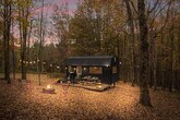 The advertised rate of $1,460/month is the lowest available price, based on a 1 month(s) stay with a move-in date of April 12, 2026. Rates vary depending on the duration of stay, season, and other parameters. For exact pricing and additional pricing components, please visit our website and enter your desired move-in and move-out dates. The rate is applicable when billed upfront; it can be higher if billed in multiple payments. Escape to the woods and feel at home in this off-grid tiny cabin, perfect for a peaceful summer getaway. Set on 4 private acres and surrounded by 150+ acres of public state land, it’s a dream for nature lovers. This is glamping with soul—rustic, but full of comfort and charm. Enjoy solar-powered path lights, a custom-built outhouse, and an outdoor solar shower for a true nature-meets-comfort experience. Inside, there is a cozy sleeping loft, luxe linens, Pendleton blankets, and vintage touches. The kitchenette features a foot-pump sink, one-burner stove, cookware, and a Bodum pour-over coffee maker. Relax in the indoor loveseat, dine with forest views, or head outside to the fire pit, propane grill, hammock, and picnic table for al fresco meals. Games, books, sketchpads, plush towels, dishware, pots and pans, a vintage bar set, a sheepskin rug, linen duvet, and yoga mats are provided. Wi-Fi is available, along with one outlet for charging essentials. A Yeti cooler is provided for food storage—just bring ice. One well-behaved dog is welcome with prior approval and a small fee. Commercial filming and photography are permissible with an additional fee. Nestled beneath the trees and framed by old stone walls, the cabin stays cool in summer and cozy in winter thanks to full insulation. Wildlife sightings are part of the magic—keep an eye out for deer, wild turkeys, and maybe even a bear! You’ll also get access to favorite hidden trails, picnic spots, and sunrise and sunset viewpoints. The cabin is located near Brushland Eating House, The Andes Hotel, Wayside Cider, Wild Common Wine, Russel General Store, Hollow, BlueBee Cafe, Hamden Inn, Willbee's, Clementine Vintage Clothing, Carlista Shop + Studios, Hawk & Hive, Diamond Hollow Books, The Stonehouse, This & That, Stone & Sawyer, Bushel Collective, The Inn at West Settlement, Roxbury Barn, Stone Tavern Farm, Maple Shade Farm, Natural Gardens, Stonewall Estates, Belleayre Ski Center, Plattekill Ski Center, Cooperstown Dream Park, All Star Village, SUNY Delhi, and SUNY Oneonta/Hartwick College. Guests have access to the entire property except a garage that sits at the front of the property. Delaware County, NY, is a four-season vacation destination. Outdoor activities include hiking, biking, and fishing. Fall is for leaf peeping. Winter is packed full of activities. Restaurants often showcase locally made or grown food like cheese, bread, meat, fruit, and vegetables. Shops abound, there's always something to see! There are no curtains in the cabin. If you’re sensitive to sunlight, a sleep mask is recommended. The wood stove does not have a safety gate, so please use extra caution, especially with young guests. The loft has a low ceiling and is accessed by a ladder and is not ideal for small children or infants. The cabin is in an area with no cell service, so enable Wi-Fi Calling on your phone before arrival. The driveway to the cabin is uphill, and 4WD or AWD vehicles are necessary. The driveway is plowed and shoveled to the entrance, and a shovel is provided to keep the walkway maintained during your stay. Firewood is provided for the wood stove inside the cabin only. There will be a $50 charge for using the firewood provided in the outdoor fire pit. No parties are allowed, and only the number of guests on the reservation should be in the house. Quiet hours are from 9 pm to 8 am, so keep outdoor noise to a minimum. No ATVs, snowmobiles, fireworks, or firearms are allowed. Winter weather can be mercurial, so check the weather report for this area and plan your travel accordingly. Snow plows do not operate on secondary roads between 8 pm and 5 am. The road to the house is a single-lane dirt country road that is plowed by the town of Bovina Center but will still have potholes, so drive carefully. Standard check-in is at 4:00 PM and check-out is at 11:00 AM. No changes to check-in or check-out times are possible from Memorial Day through Labor Day, or on holidays. Outside of those dates, time adjustments may be possible with at least 24 hours’ notice and are subject to availability. An hourly fee may apply for significant changes. No smoking is allowed. If you must smoke, do so outdoors only and extinguish when done then put in the garbage. Registration Number: 20220964 [SI]