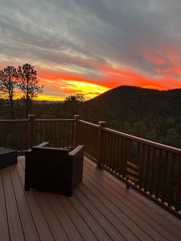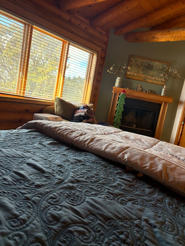 Property Id: 2368613 Stunning log home. Nicely furnished. Beautiful views. Many say the place is spiritual. Kitchen fully appointed. Open spaces. Modern. Large new deck. Wildlife travel through the property. 8200 ft in elevation. 45 minutes from Santa Fe, NM. Fresh pristine air. Loft with 2 beds , chair and desk. 2 Fireplaces. Not a cost for plumbed water. Skylights in some rooms. Wildflowers in Spring. Hummingbirds in warmer months. Ravens around. Best of both worlds. Living in the forest while being close to Santa Fe, NM. Monthly is fine. Prefer yearly lease. But will be flexible.