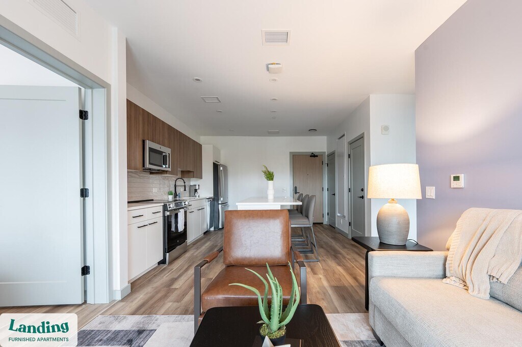 Landing offers flexible lease terms from weeks to months. Please always visit our website or contact us for the latest pricing & availability. Stay longer, save more: 6-Month Minimum base rent: starts at $4025/mo 12-Month Minimum base rent: starts at $3665/mo Landing offers flexible leases across a network of over 35,000 fully-furnished apartments throughout 375+ cities so you can rent on your terms, practically anywhere, and avoid the hassle of paying deposits or application fees. Visit to learn about all the benefits of a Landing membership, see our competitive up-to-date pricing, explore available apartments, take virtual tours, and make reservations online without jumping through traditional rental hoops. Landing's apartments at The Beck are designed for comfortable, easy living, with the ability to stay as long as you like. Experience living with Landing Every apartment is outfitted with all the modern essentials including: custom-designed furnishings, a fully-equipped kitchen with deluxe stainless steel appliances, a gourmet coffee maker, premium linens, Smart TVs, and incredibly fast, reliable internet for working from home. When you live with Landing, you'll enjoy a hassle-free experience with the added benefit of 24/7 access to our dedicated member experience team. Some of the nitty-gritty: a background check and proof of income are required; we're completely smoke-free; bundled utility packages and pricing vary based on length of stay; pet-friendly options available; listed price reflects a 12-month minimum stay.